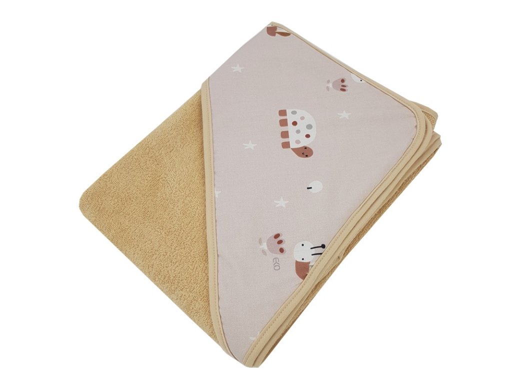 EKO Osuška na kúpanie s kapucňou bavlnená Bees Beige 100x100 cm