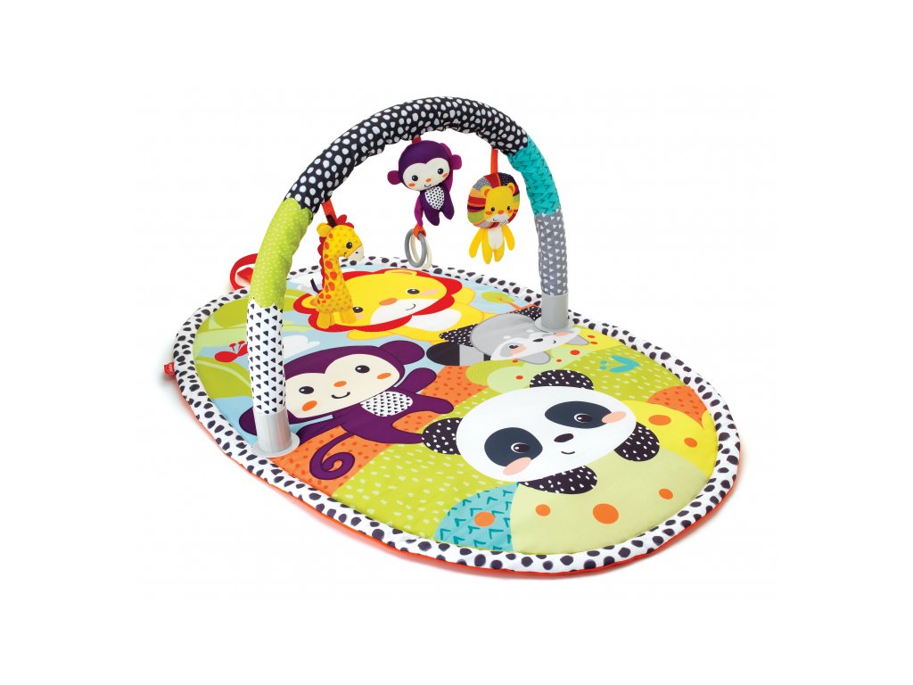 Hracia deka s krásnymi ilustráciami zvieratiek zo ZOO. Zavesené hračky na hrazde zabavia a nabádajú k skúmaniu bábätko ležiace na chrbte.