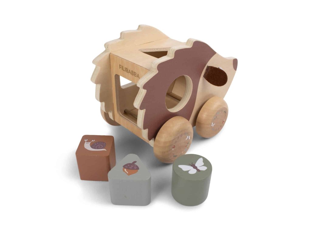 Dve najobľúbenejšie detské hračky v jednom: ježko na ťahanie a zároveň vkladačka tvarov. Tento malý ježko vás bude rád nasledovať po dome a vkladačka tvarov určite zamestná malé ručičky na nejaký čas.