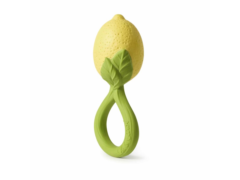 Nový revolučný koncept! Hrkálka a hryzadielko v jednom v tvare citrónu od Oli&Carol je NAJZELENEJŠIA HRAČKA NA TRHU! Jeho povrch je vyrobený zo 100% prírodného kaučuku a vo vnútri sú upcyklované čerešňové semienka, ktoré premenia toto hryzadlo na hrkálku. 2 v 1!