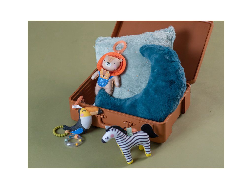 Závesná hračka v podobe leva Harryho pri pohybe hrká. Hrivu leva tvorí mäkké hryzátko pre skúmanie ústami. V kapsičke na brušku leva vykukuje šuštiace levíča Libby.