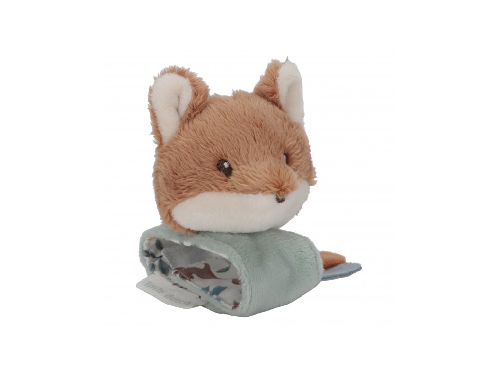 Mäkká hrkálka s rozkošnou líškou ľahko pripevníte na ruku dieťaťa s pomocou úchytu na suchý zips. Hračka z jemného plyšového materiálu hrká, šuštia a láka dieťa na skúmanie.