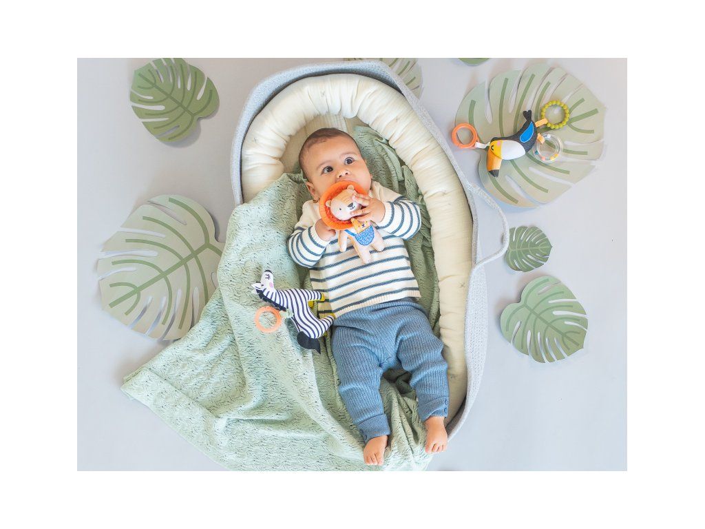 Vďaka plastovému krúžku hračku ľahko pripevníte napr. na autosedačku či kočík.