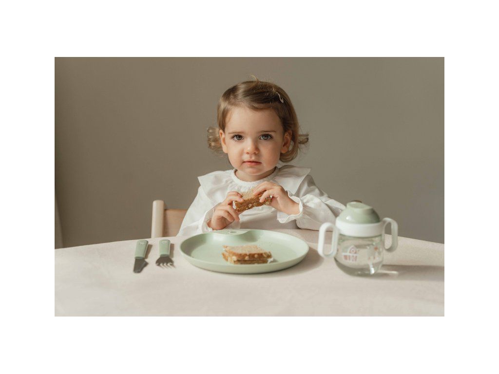Hrnček s krásnou potlačou má náustky na oboch stranách, takže dieťa môže začať piť bez ohľadu na to, z ktorej strany ho uchopí. Nová verzia hrnčeka má vylepšené náustky pre jednoduchšie pitie. Krátke náustky sú odporúčané pre zdravý vývoj úst a zubov dieťaťa. Držadlá umožňujú ľahké uchopenie detskými ručičkami. Viečko bráni vytečeniu obsahu hrnčeka pri prenášaní.