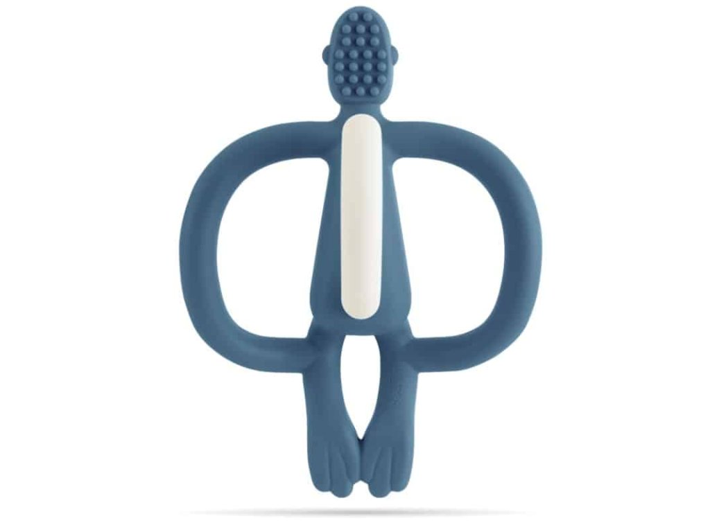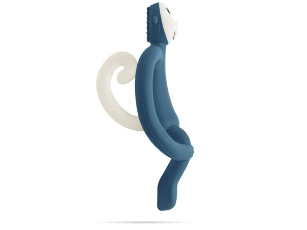 - Zábavná, mäkká, texturovaná opička sa vďaka svojmu tvaru dostane spolu so zubným prípravkom priamo k zdroju bolesti, pričom zubná kefka zároveň jemne masíruje ďasienka.
