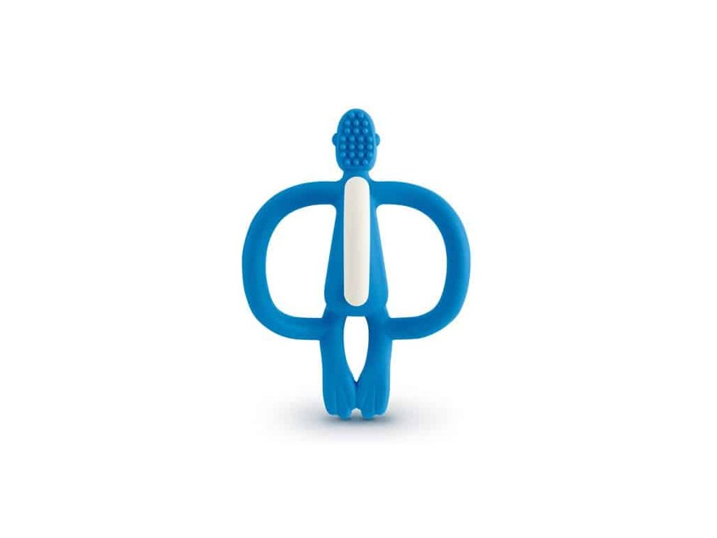 - Zábavná, mäkká, texturovaná opička sa vďaka svojmu tvaru dostane spolu so zubným prípravkom priamo k zdroju bolesti, pričom zubná kefka zároveň jemne masíruje ďasienka.