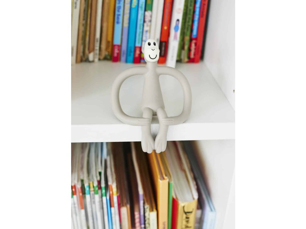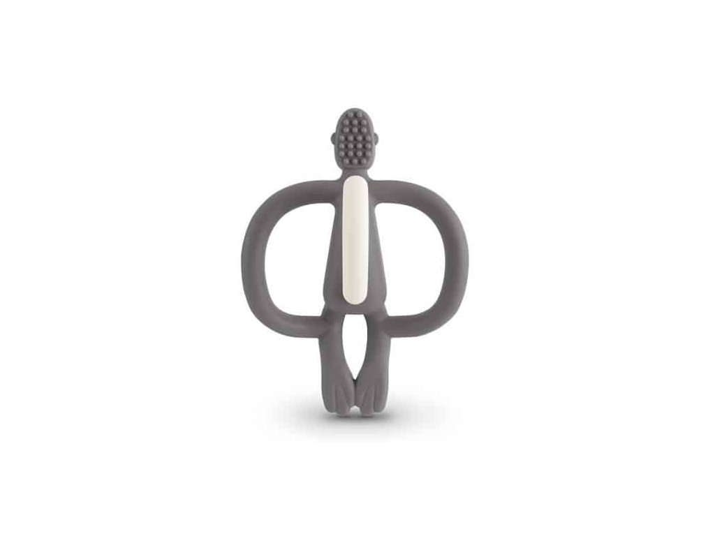 - Zábavná, mäkká, texturovaná opička sa vďaka svojmu tvaru dostane spolu so zubným prípravkom priamo k zdroju bolesti, pričom zubná kefka zároveň jemne masíruje ďasienka.