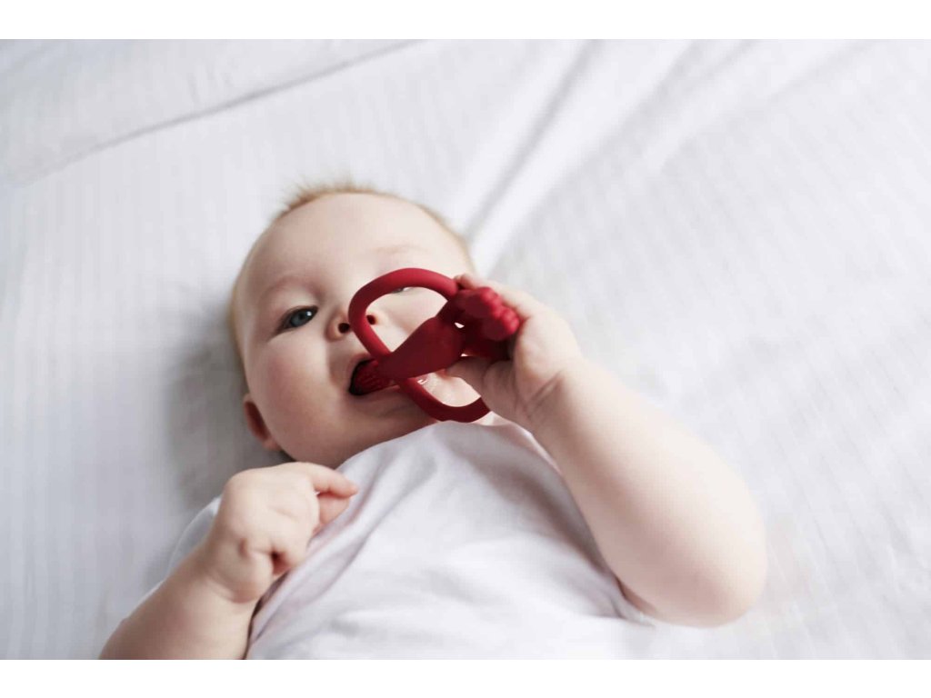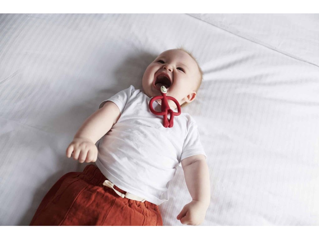 HRYZÁTKO A ZUBNÁ KEFKA MATCHSTICK MONKEY TEETHER RED