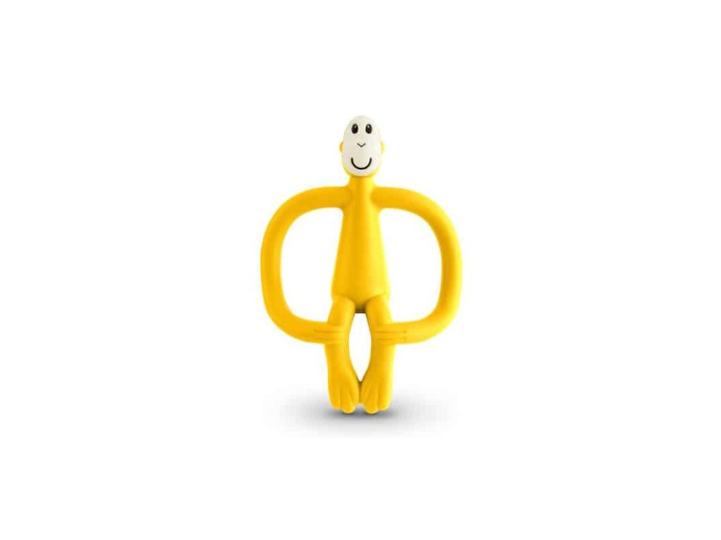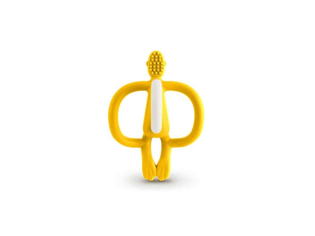 - Zábavná, mäkká, texturovaná opička sa vďaka svojmu tvaru dostane spolu so zubným prípravkom priamo k zdroju bolesti, pričom zubná kefka zároveň jemne masíruje ďasienka.