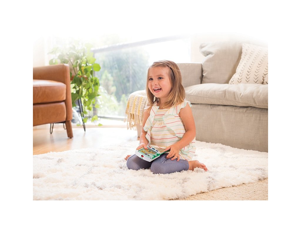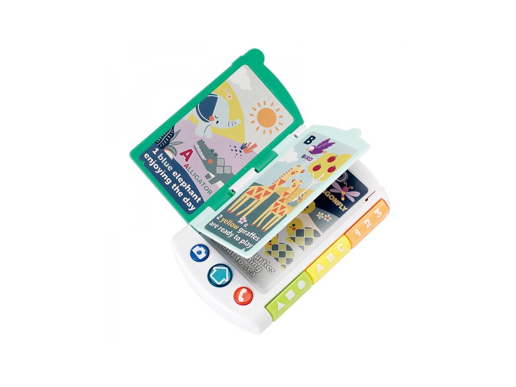 Zábavná interaktívna hračka Infantino, ktorá spája telefón na hranie a malú obrázkovú knižku plnú prekvapení. Na prednej strane má veľké zrkadlo a tlačidlá, s ktorými sa dieťa môže hrať na volanie alebo fotenie. Po otvorení stránok sa spustí vzdelávací obsah – hračka prečíta jednoduché vety a nabáda deti k objavovaniu tvarov, farieb a čísel.