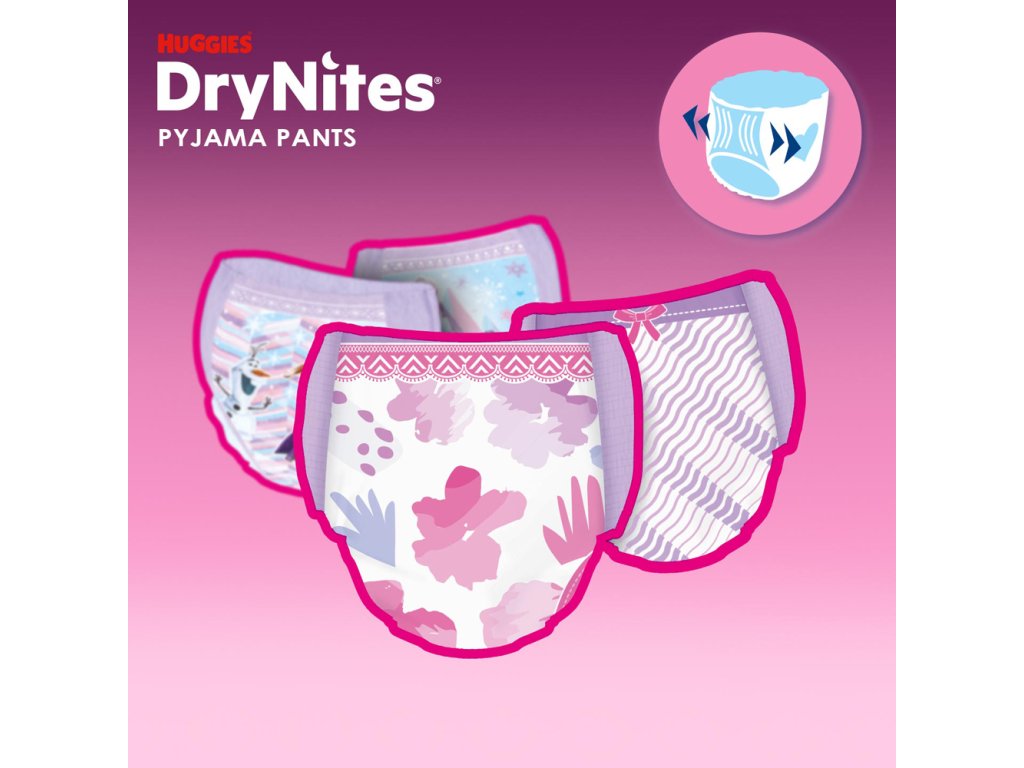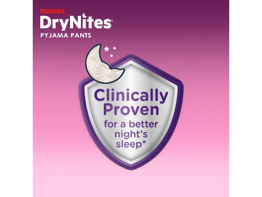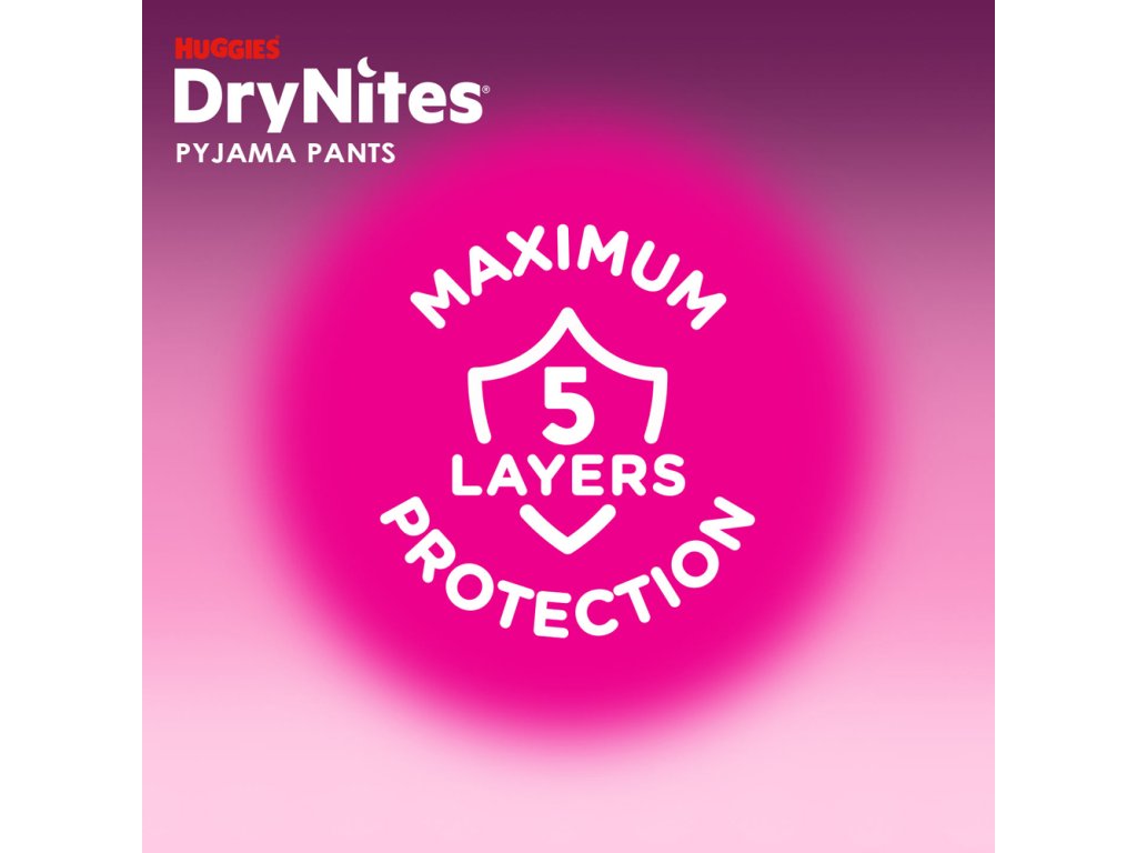 DryNites® naťahovacie nohavičky na noc pre deti vo veku od 13+ rokov a s hmotnosťou 48-60 kg poskytujú vášmu dieťaťu spoľahlivú ochranu pri nočnom pomočovaní, aby cez noc zostalo v suchu. Bolo klinicky overené, že prispievajú k lepšiemu spánku v noci. Majú 5 vrstiev, ktoré zaisťujú maximálnu ochranu pred pretečením, a vďaka svojmu jedinečnému dizajnu pripomínajú bežnú spodnú bielizeň. Zároveň sú vyrobené z priedušného materiálu, takže pokožka môže voľne dýchať. DryNites® naťahovacie nohavičky na noc umožnia vášmu dieťaťu si bez obáv užiť zábavu aj na detských táboroch, výletoch, alebo napríklad pri prespávaní u kamarátov.
