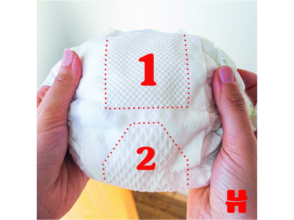 Dve špeciálne absorpčné zóny pre ešte lepšiu ochranu pokožky - mäkké vankúšiky vpredu a vrecko na tekutú stolicu vzadu.