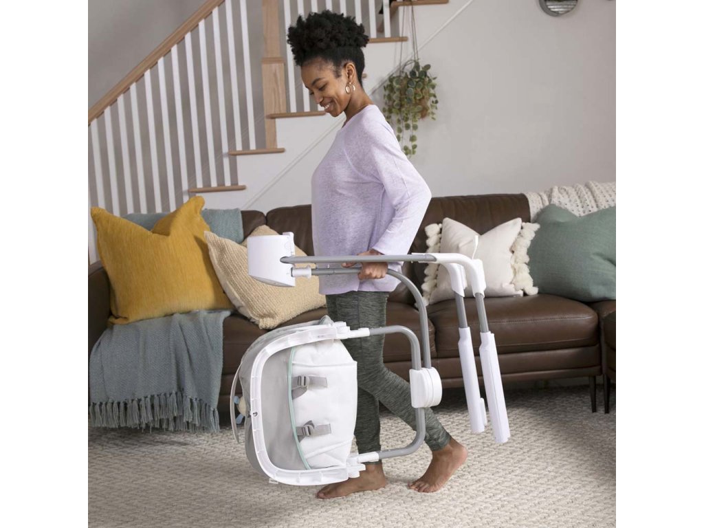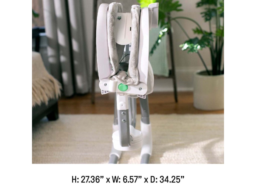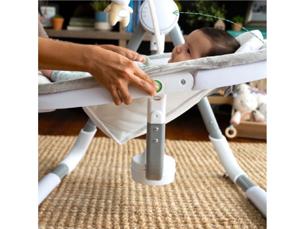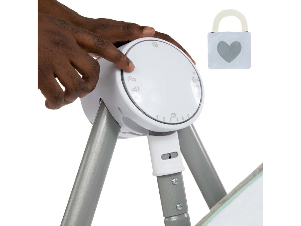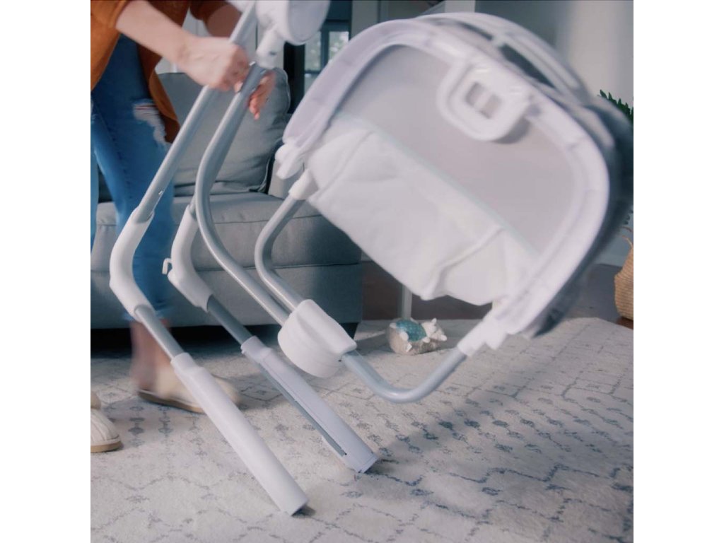 Vďaka kompaktnému skladaciemu dizajnu je hojdačka ľahko prenosná a jednoducho sa skladuje. Hojdačka je vybavená 5- bodovým pásom a protišmykovými nožičkami pre bezpečnosť a ľahko sa udržuje v čistote. Neutrálny dizajn a luxusné funkcie uľahčia deň rodičom a doprajú odpočinok dieťatku. Môžete použiť sieťový adaptér v blízkosti zásuvky alebo prepnete hojdačku do režimu batérie.