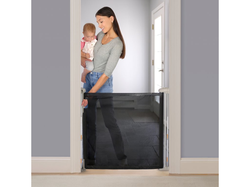Bezpečnosť, ktorú si ani nevšimnete, až kým ju nebudete potrebovať. S rolovacou zábranou od Ingenuity Thruway 52W Series ochránite svoje dieťa alebo domáceho miláčika štýlovo a prakticky. Zábrana má výšku 76 cm a pokrýva priechody až do šírky 132 cm. Keď ju nepotrebujete, jednoducho sa schová do kompaktného držiaka a nenaruší vzhľad vášho domova. Čierna priedušná sieťovina je priehľadná, takže máte vždy prehľad o tom, čo sa deje na druhej strane. Unikátny mechanizmus Tuck Away zabezpečí rýchle rozloženie aj zloženie, a automatické zamykanie po zatvorení poskytuje maximálny pocit bezpečia bez ďalších úkonov. Zábrana bola nezávisle testovaná a schválená z hľadiska bezpečnosti a je ideálnym riešením pre rodičov aj majiteľov domácich zvierat, ktorí chcú bezpečný domov bez kompromisov v štýle.