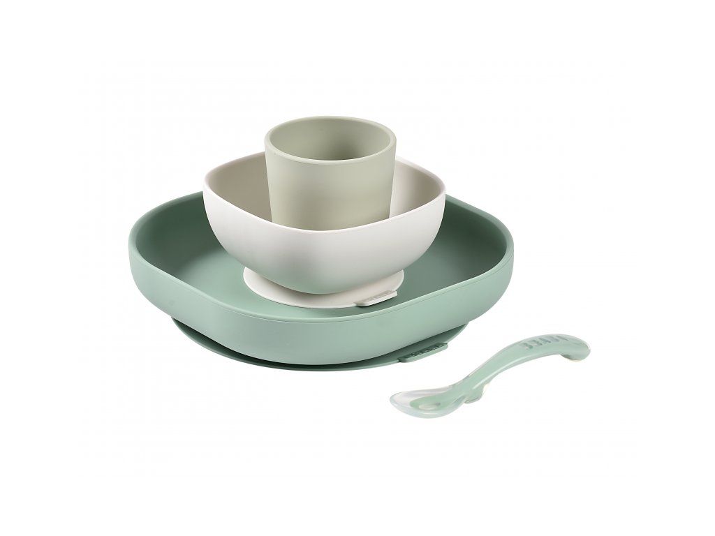 Jedálenská sada silikónová 4-dielna Sage Green / Misty Green