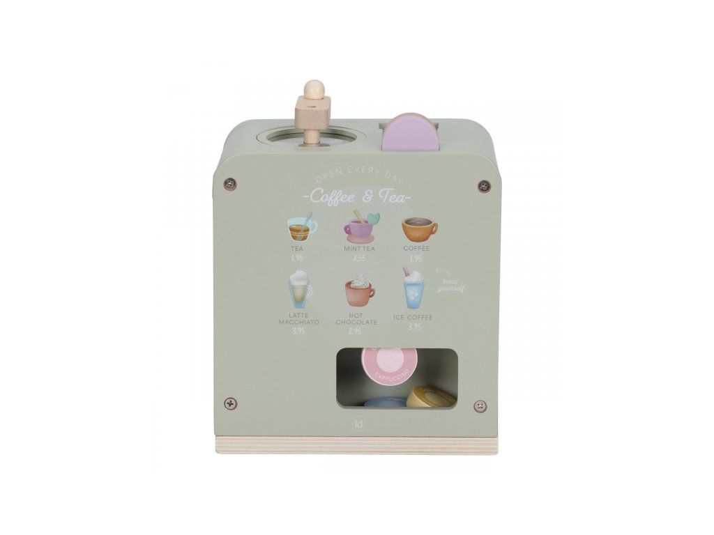 Na akú kávu máte dnes chuť? S týmto krásnym dreveným kávovarom sa z každého dieťaťa stane malý barista. Pre svojich hostí si môže namlieť kávu, vybrať kapsulu, naliať mlieko a ozdobiť nápoj podľa vlastnej fantázie.