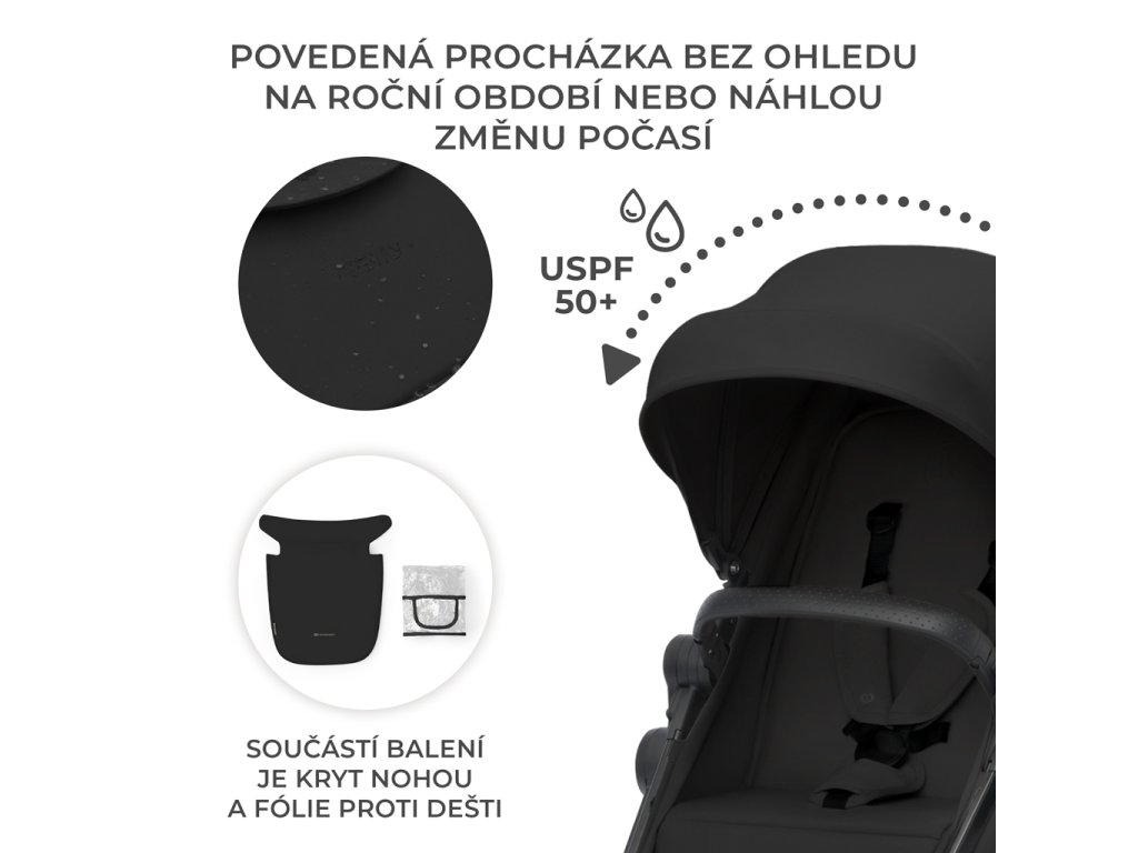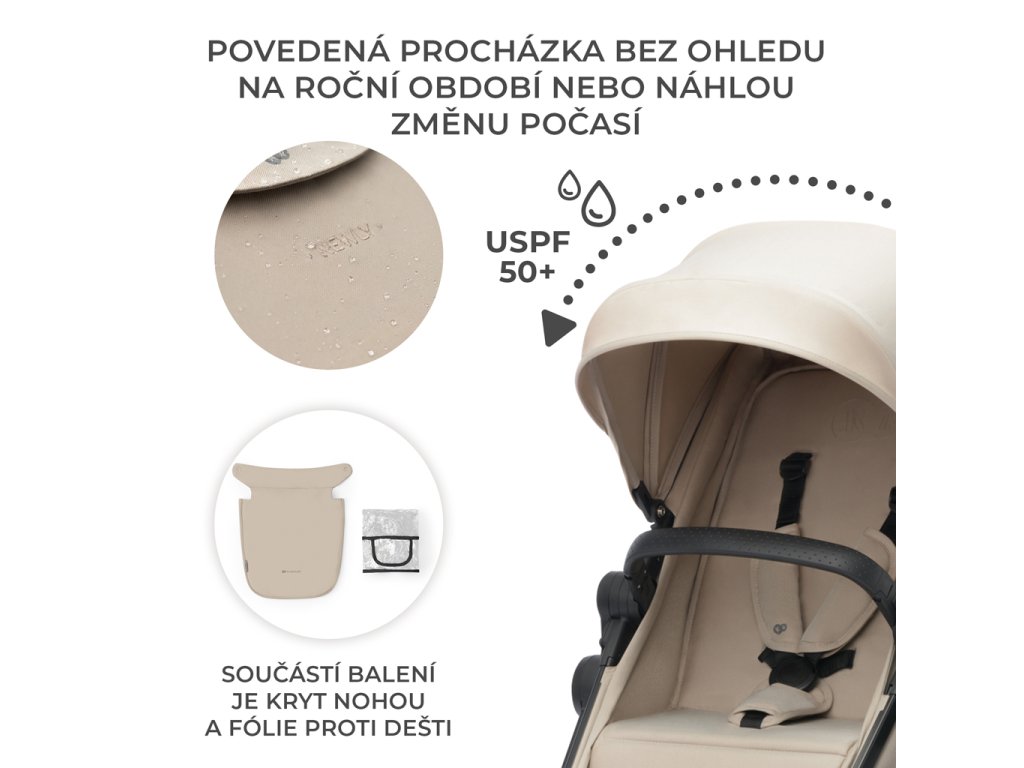 Newly kočík 4 v 1 je ideálny na prechádzky v každom ročnom období. Má veľkú, nepremokavú striešku vyrobenú z tkaniny UPF50+ s dodatočnou slnečnou clonou. Ochráni vaše dieťa pred vetrom, dažďom a snehom a ochráni ho aj pred škodlivým UV žiarením a zároveň poskytne tieň na prechádzkach. Obsahuje tiež okno, cez ktoré môžete vidieť, čo vaše dieťa robí na prechádzke.