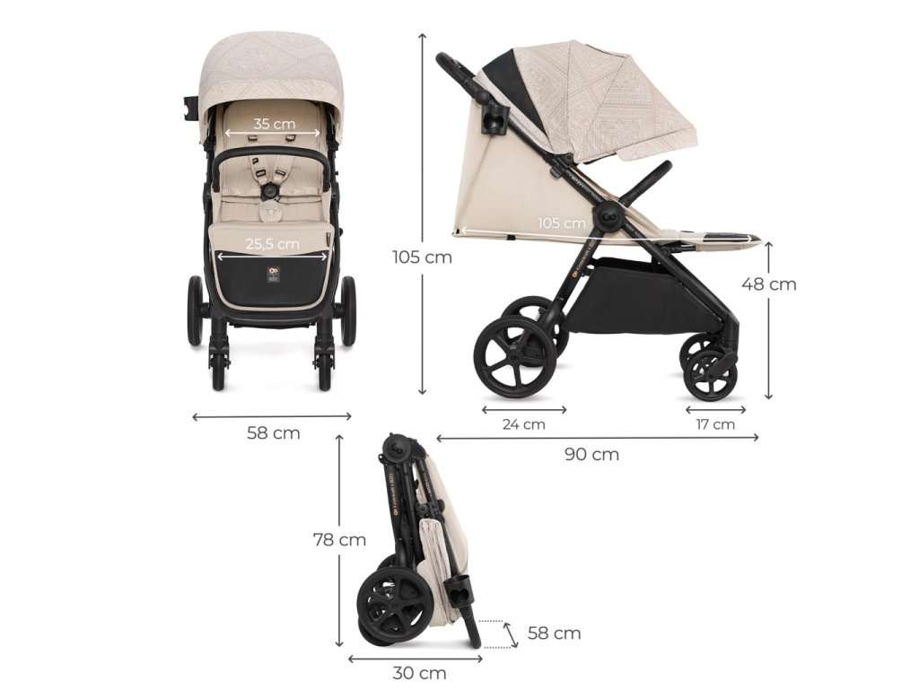 MITZY sa skladá do kompaktnej veľkosti jednou rukou. Systém skladania dovnútra chráni látku sedadla pred znečistením. Kočík je ľahký, takže ho ľahko vynesiete po schodoch, a jeho kompaktné rozmery v zloženom stave vám umožnia uložiť kočík do auta spolu s batožinou.
