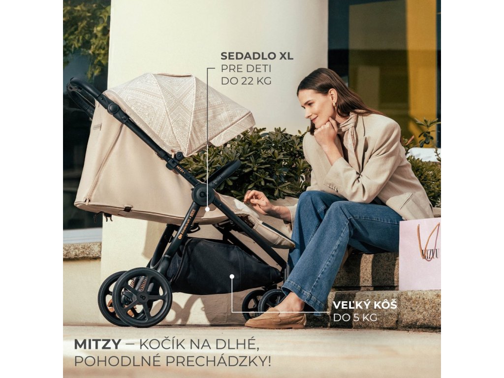 Vďaka kočíku MITZY znovu objavíte radosť zo spoločných prechádzok. Je to športový kočík do 27 kg, ktorý zaujme svojou funkčnosťou, ľahkosťou a prispôsobením sa dieťaťu a rodičovi. Dlhé XL sedadlo je ideálne pre menšie aj väčšie deti až do predškolského veku. Tento športový kočík má plné odpruženie na veľkých, neprepichnuteľných kolesách - v kombinácii s mäkkým sedadlom a širokým rozsahom nastavenia opierky chrbta a opierky nôh zaistí vášmu dieťatku pohodlie aj počas jazdy po vydláždenej ceste.