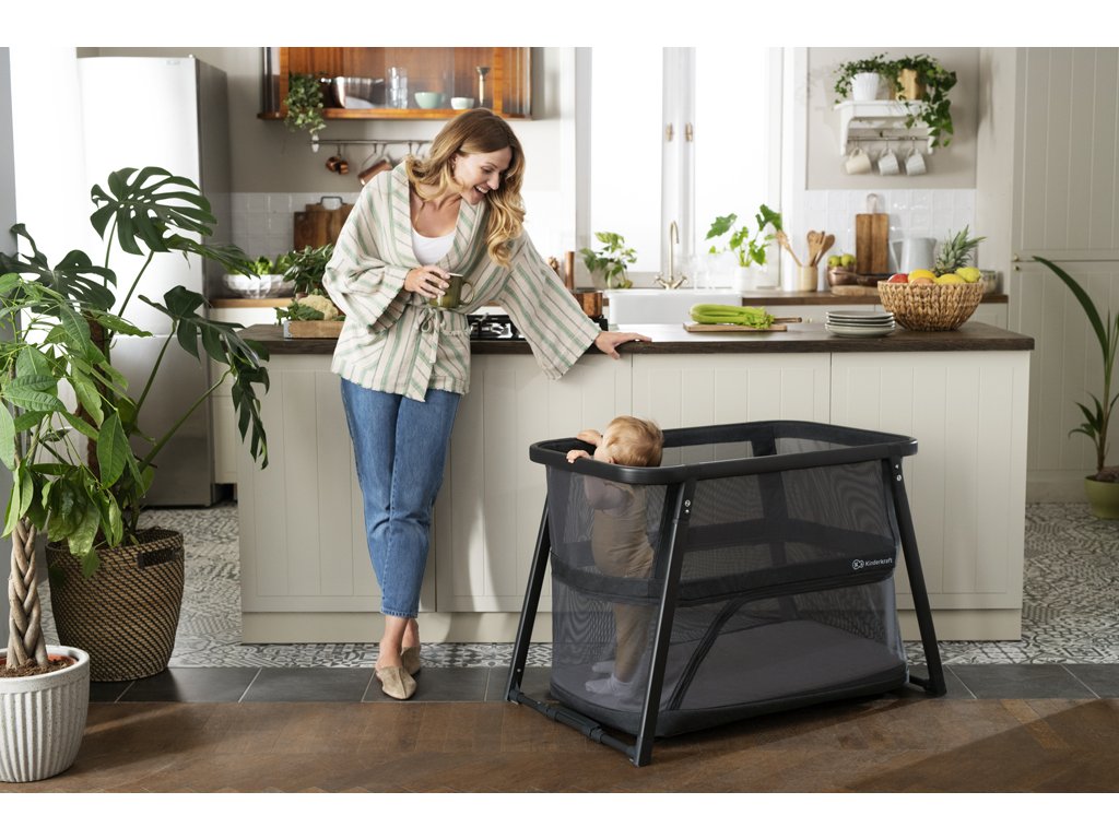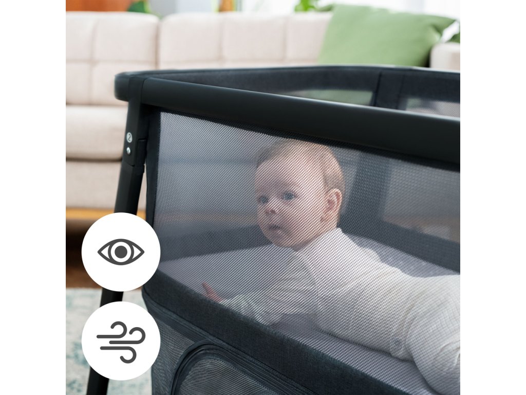 Bočné steny postieľky sú vyrobené zo sieťoviny, ktorá poskytuje dobrý výhľad na dieťa. Vďaka tomu, bez ohľadu na to, či dieťa v ohrádke spí alebo sa hrá, budete ho mať stále na očiach. Sieťovina dobre poslúži aj počas teplých dní, keď sa vaše dieťa bude hrať vonku.