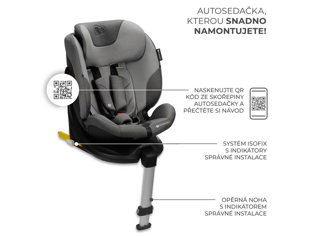 Autosedačku môžete namontovať behom chvíľky - má špeciálnu integrovanú základňu ISOFIX s opornou nohou, ktorá zvyšuje stabilitu autosedačky I-FIX i-Size počas jazdy alebo nárazov. Sedačka sa upevňuje na ISOFIX a opornú nohu v dvoch polohách: RWF (výška 40-105 cm) a FWF (výška 76-105 cm). Keď vaše dieťa dosiahne výšku 100 cm, upevníte autosedačku I-FIX i-Size na systém ISOFIX a na pás automobilu, alebo len na pás automobilu, ak vaše vozidlo nemá systém ISOFIX. Nezabudnite, že návod na použitie musíte mať vždy po ruke. Jednoducho naskenujte QR kód na škrupine sedadla. Elektronické návody boli vyvinuté s ohľadom na životné prostredie a vaše pohodlie.