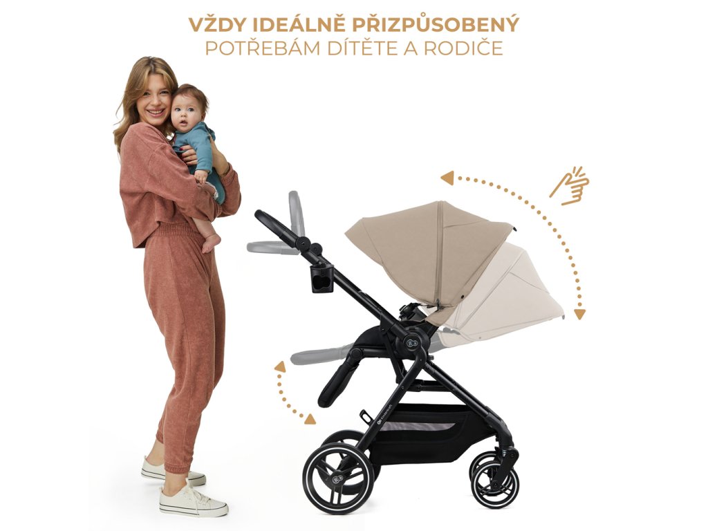 Sedadlo kočíka sa dá pripnúť smerom dopredu alebo dozadu smeru jazdy - vaše dieťatko tak môže sledovať svet okolo seba alebo sa sústrediť na vás, ak ešte nie je pripravené na jazdu v smere jazdy. Kočík sa dá zložiť spolu s pripevneným sedadlom, čo výrazne uľahčuje cestovanie.
