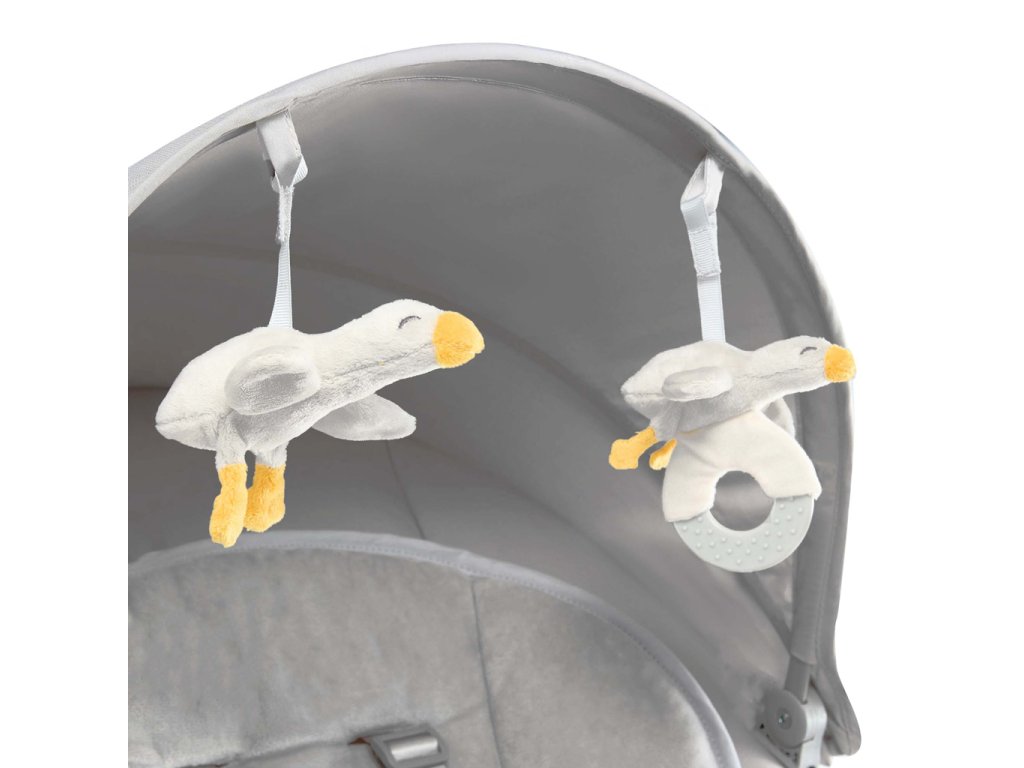 - Praktické príslušenstvo – odnímateľné hračky sa postarajú o zábavu dieťatka, zatiaľ čo odnímateľná búdka a integrovaná sieťka proti hmyzu mu zabezpečia pohodlie.