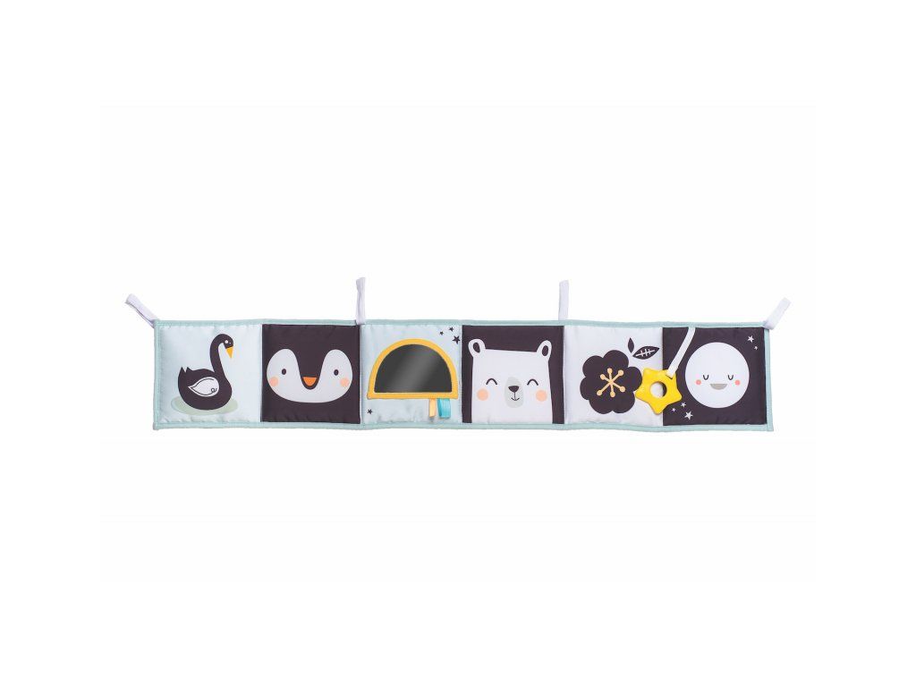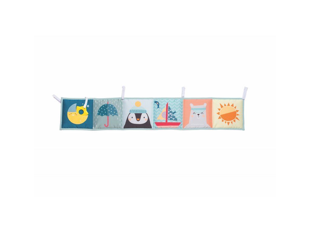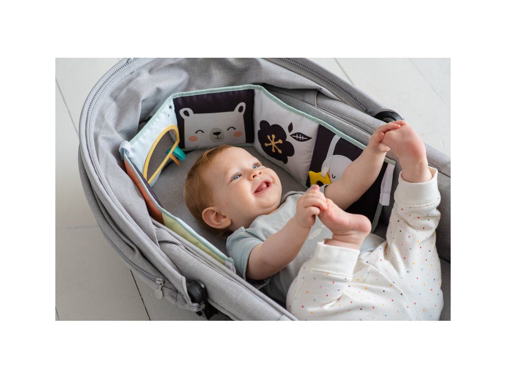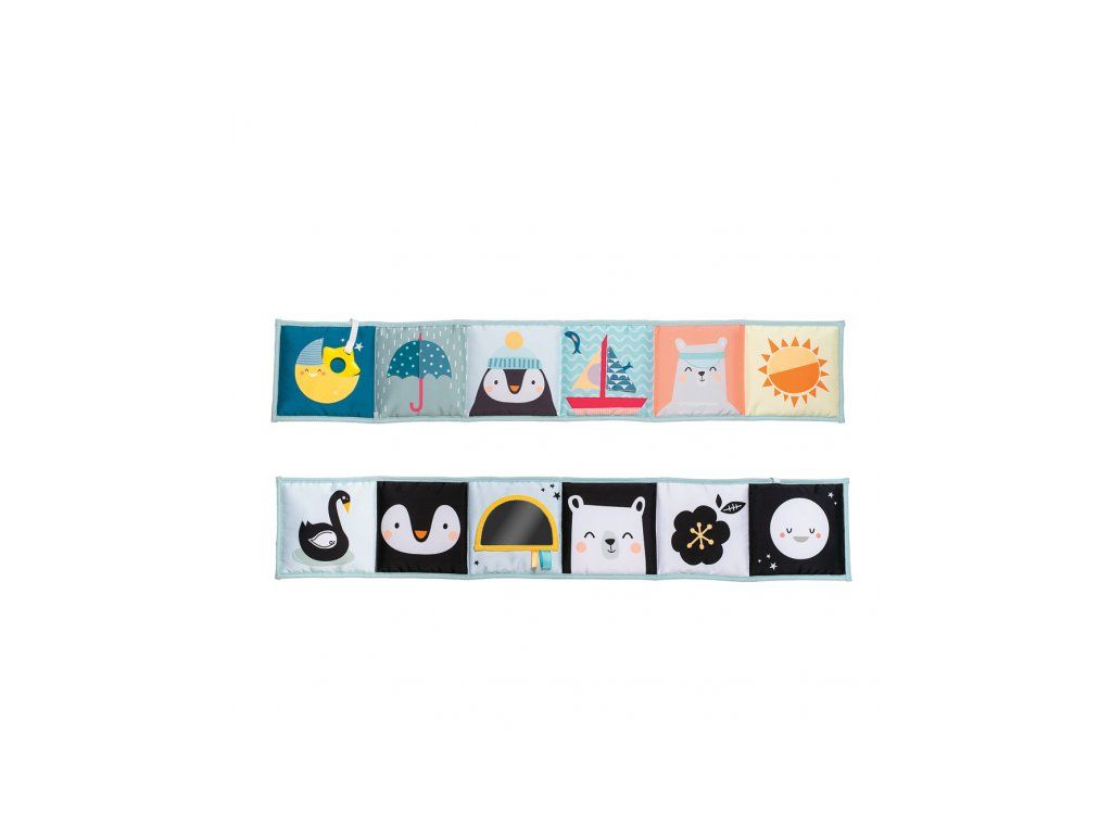 Obojstranná textilná knižka pre najmenších je určená do kočíka, postieľky aj na hraciu deku.