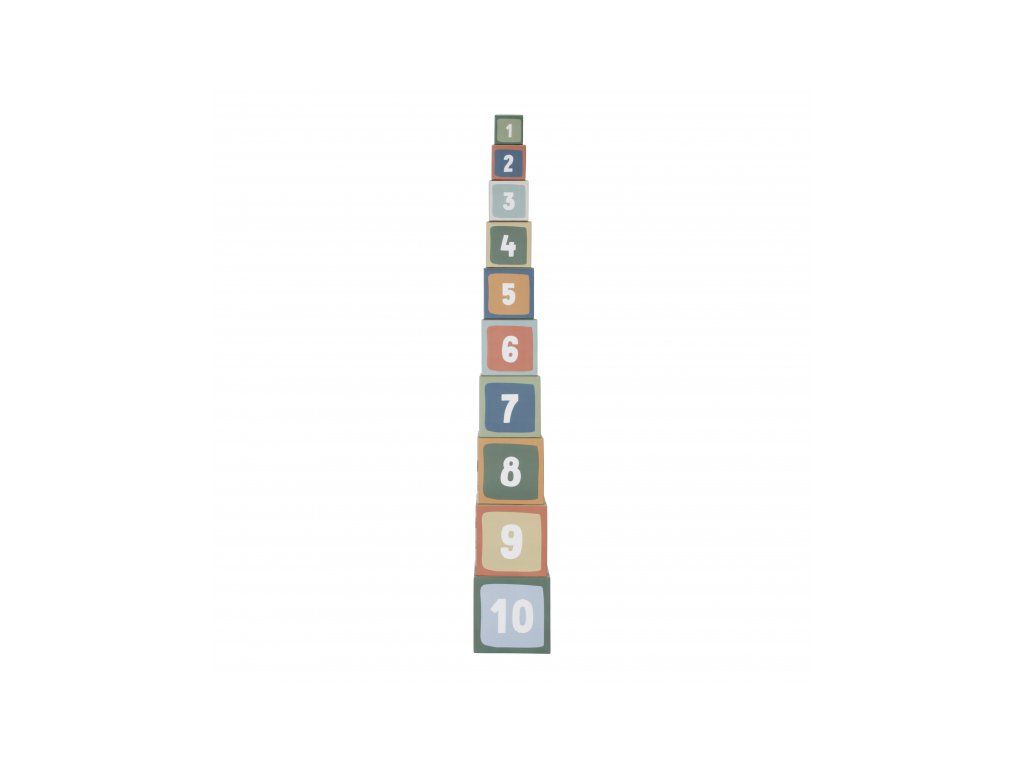 Farebné kartónové kocky s krásnymi ilustráciami motivov zo života v lese. Nechajte vaše dieťa kocky skladať na seba do vysokej veže alebo vedľa seba podľa veľkosti. V staršom veku sa dieťa s pomocou očíslovaných kociek môže hravým spôsobom učiť počítať aj rozpoznávať číslice.