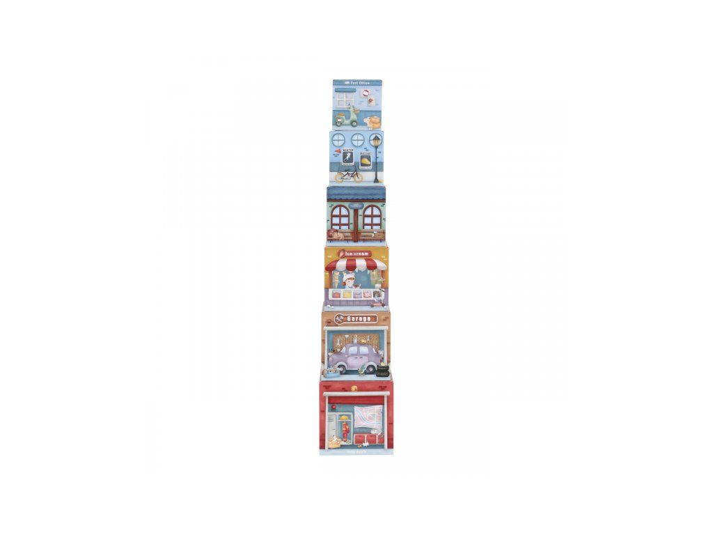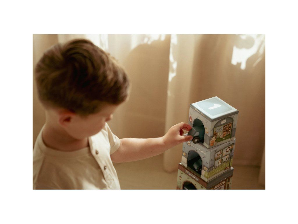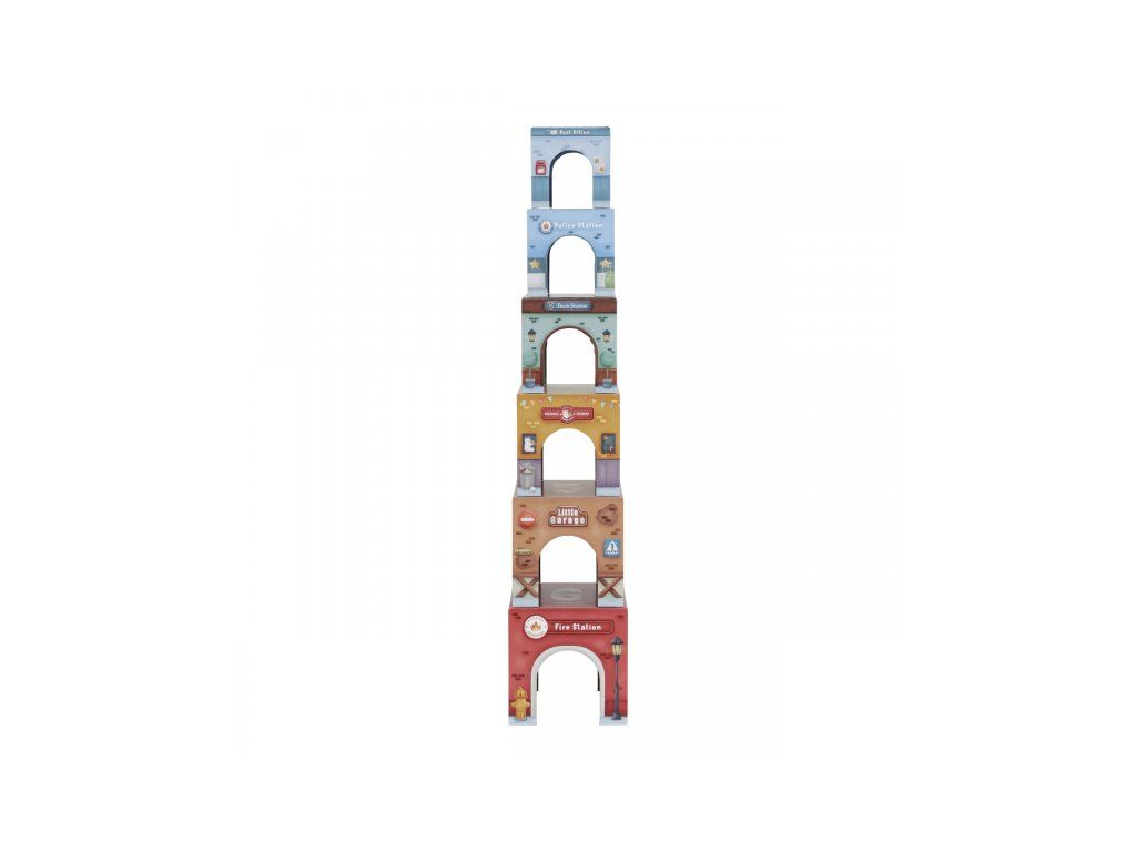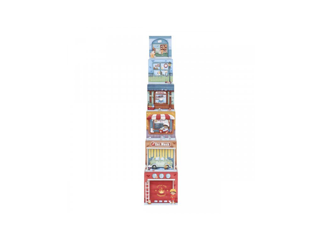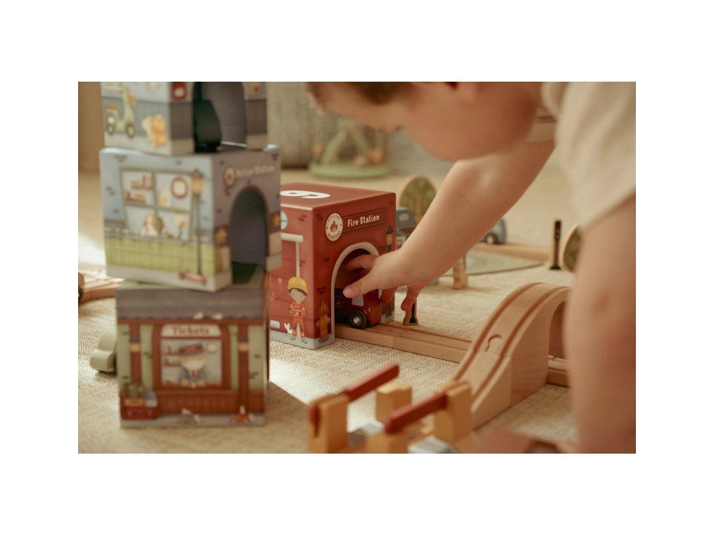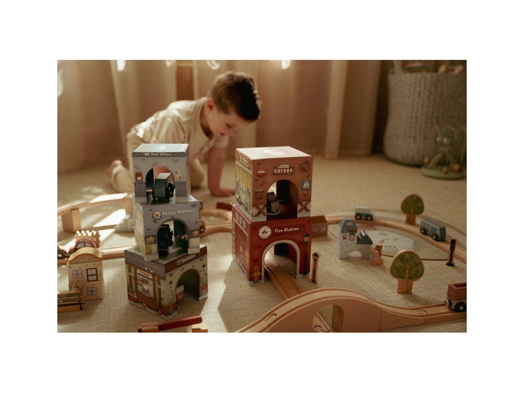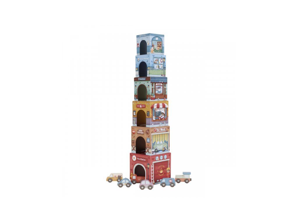 Stavať, objavovať a hrať sa! Táto nápaditá sada Little Duch obsahuje šesť ilustrovaných kartónových kociek rôznych veľkostí, ktoré predstavujú budovy ako požiarnu stanicu, garáž alebo poštu - ak nim 6 drevených vozidiel, patriacich k jednotlivým budovám.