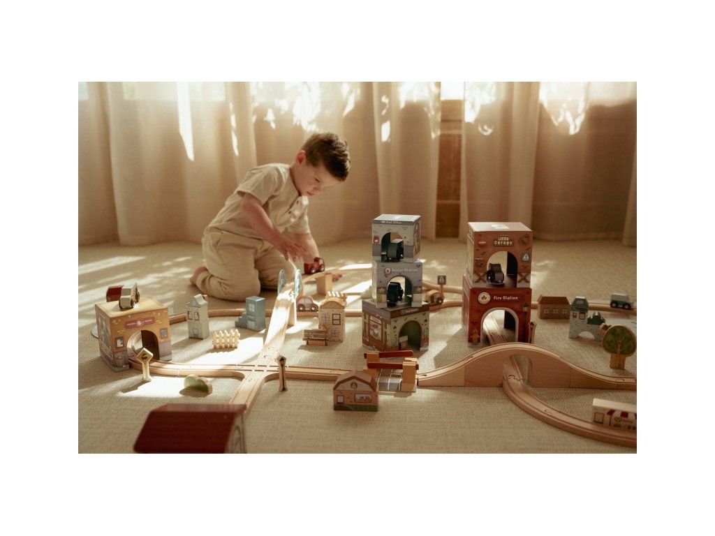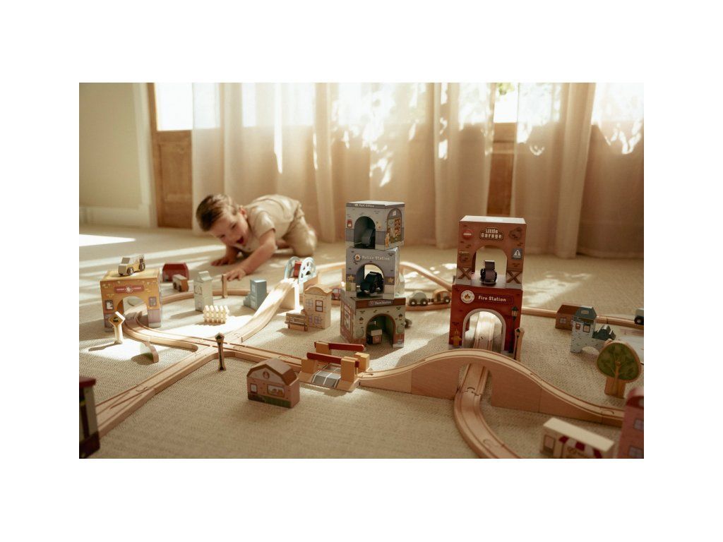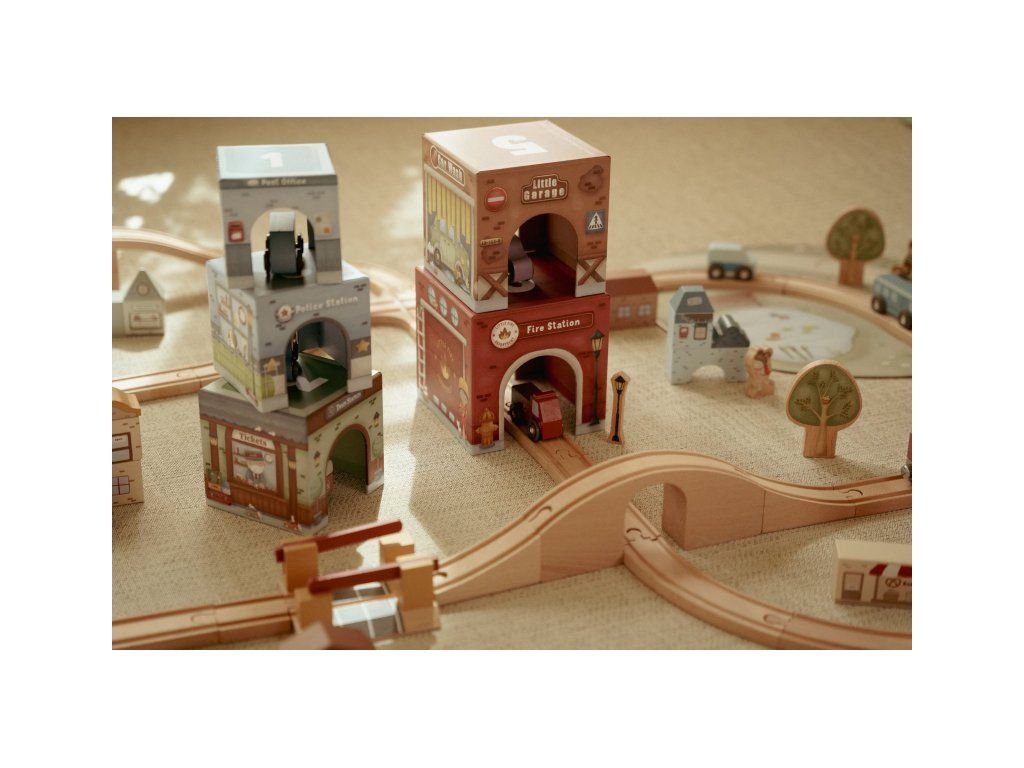 Deti môžu kocky stavať na seba do vysokej veže aj rozkladať ich po podlahe a vytvárať celé mestečko. Kocky možno skvele kombinovať aj s vláčikodráhou Little Dutch, kde vláčik aj autíčka pohodlne prejdú pod kockami ako pod mostami. Každá kocka má inú ilustráciu, ktorá podporuje rozvoj fantázie a každé vozidlo má svoje vlastné parkovacie miesto.