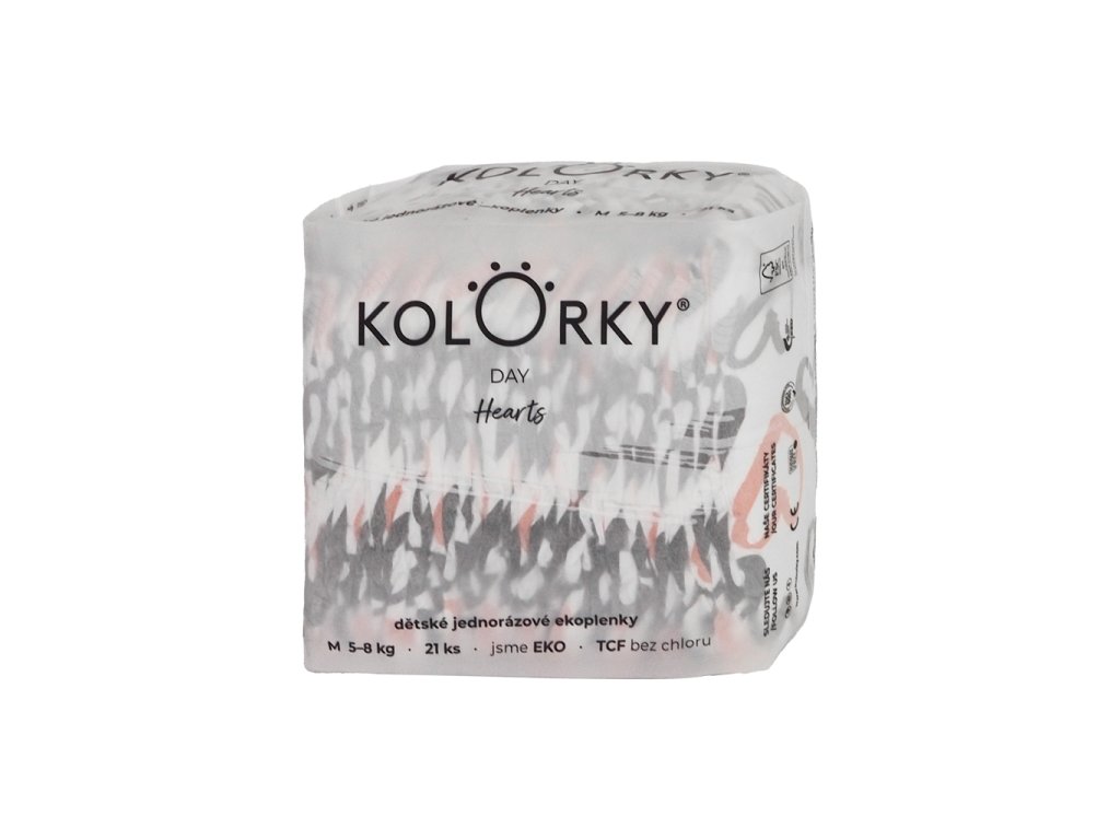 KOLORKY DAY Plienky jednorazové eko, srdce M (5-8 kg) 21 ks