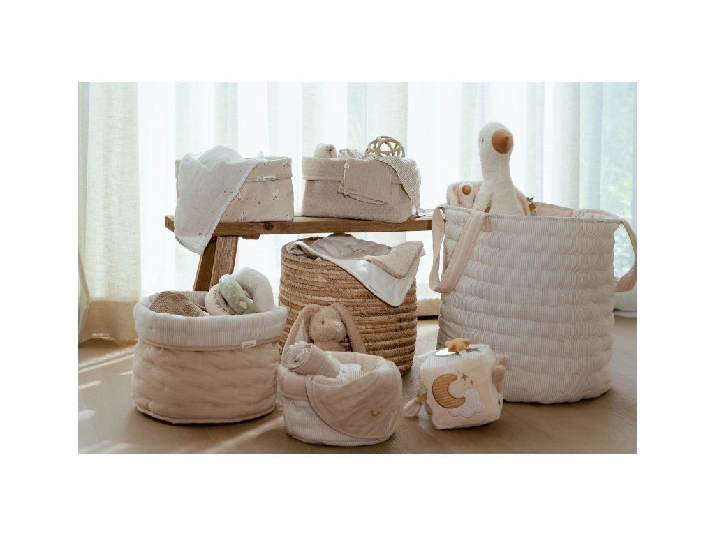 Košík bude zároveň krásnym doplnkom na prebaľovacom pulte či poličke v detskej izbe.
