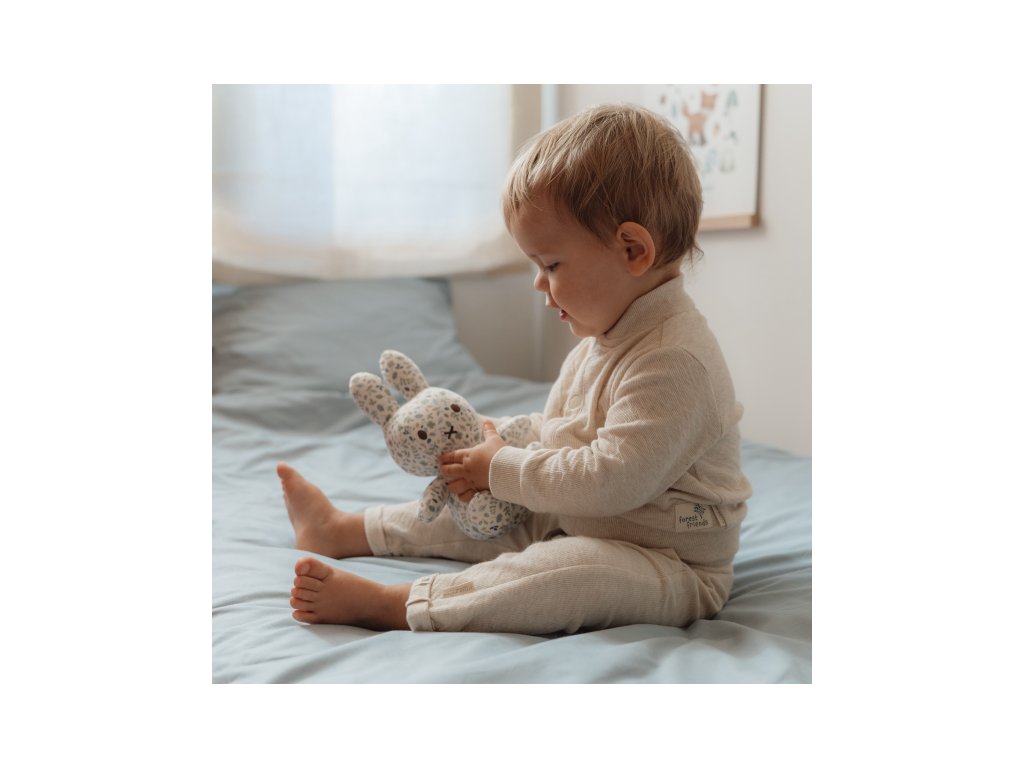 Rozkošný králik z jemného menčestra láka na hranie i maznanie pred spaním v postieľke. Slúži aj ako krásna dekorácia do detskej izbičky.