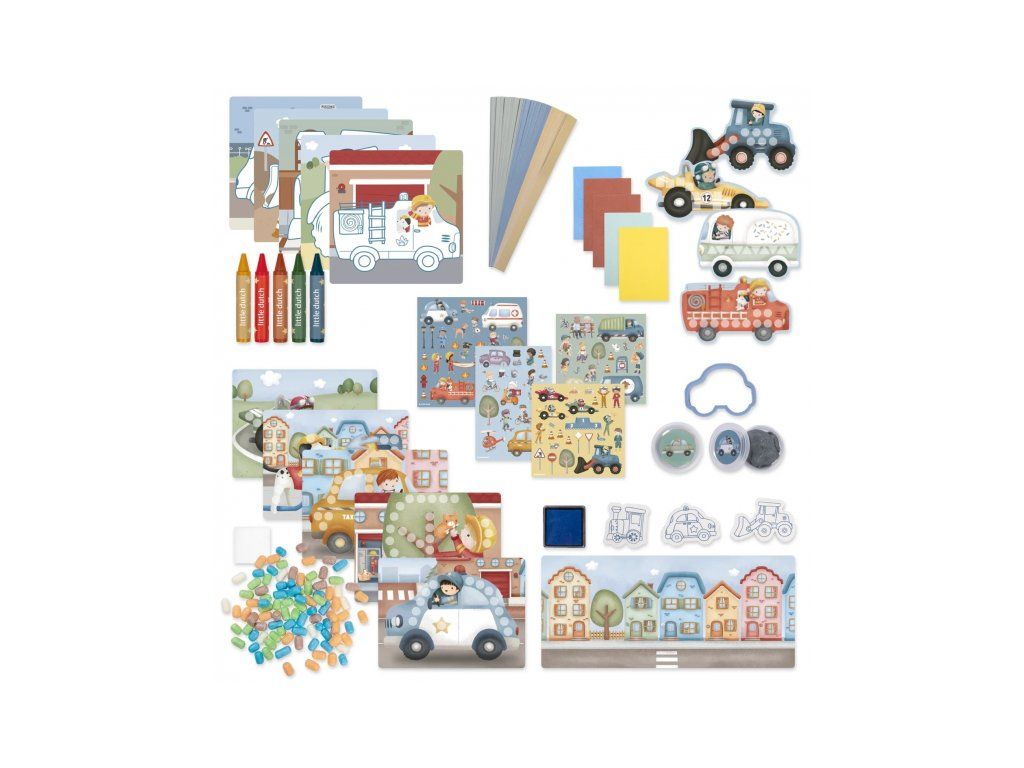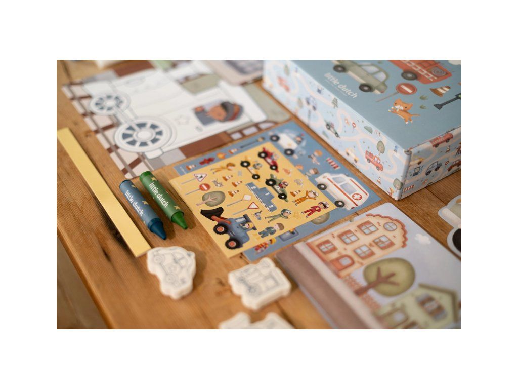 Podporte detskú fantáziu s touto veľkou kreatívnou sadou Little Dutch s tematikou dopravných prostriedkov a života v meste. Škatuľa je plná výtvarných pomôcok, ktoré inšpirujú k tvoreniu, maľovaniu i lepeniu.