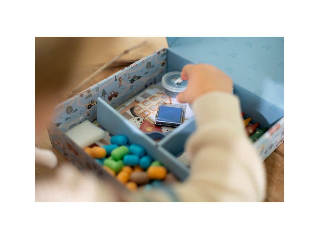 Súčasťou sady sú farebné papiere, omaľovánky, voskovky, farby, penová hmota, pečiatky a samolepky – všetko, čo malé ručičky potrebujú na nekonečnú zábavu. Ideálne pre spoločné tvorenie, objavovanie nových materiálov a rozvíjanie kreativity aj jemnej motoriky.