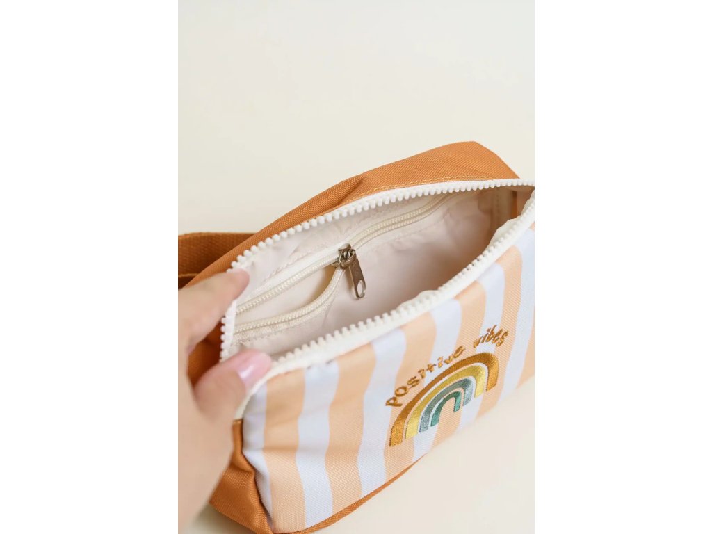 Dôležité veci ako sú kľúče, vreckové, malé hračky alebo občerstvenie na cesty máte vďaka kompaktným rozmerom vždy so sebou. Nastaviteľný bedrový popruh zaisťuje pohodlné a bezpečné uchytenie a umožňuje vášmu dieťaťu nosiť tašku okolo bokov alebo cez hrudník. Pevná pracka poskytuje dodatočné pohodlie a bezpečnosť a zaisťuje, že taška zostane na svojom mieste počas dobrodružstiev. Vnútorné vrecko na zips je ideálne na cennosti, ako sú kľúče alebo malá peňaženka.