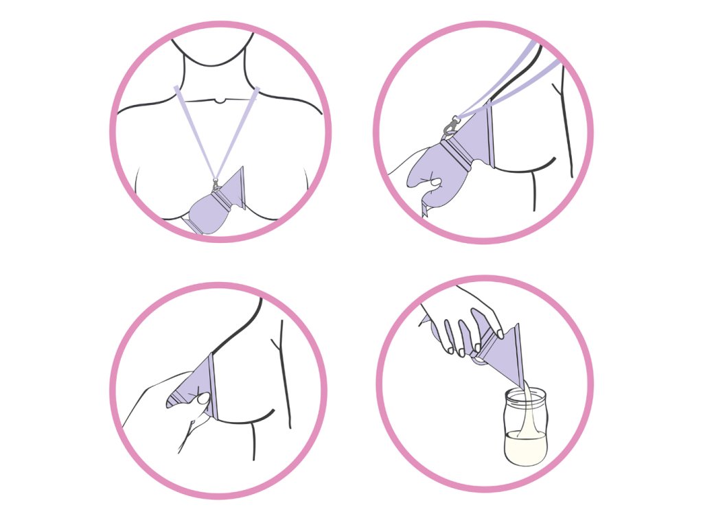Silikónová odsávačka mlieka kolektor je praktická a ľahko sa používa: Priložíte ju na prsník jemným stlačením, odsávačka sa prisaje a drží na prsníku bez pomoci vašich rúk. Akonáhle sa spustí let-down reflex (reflex vypudzujúci mlieko), materské mlieko sa zachytáva. Keď je silikónová odsávačka mlieka naplnená alebo keď je dojčenie alebo odsávanie ukončené, uvoľníte ju z prsníka jemným stlačením.
