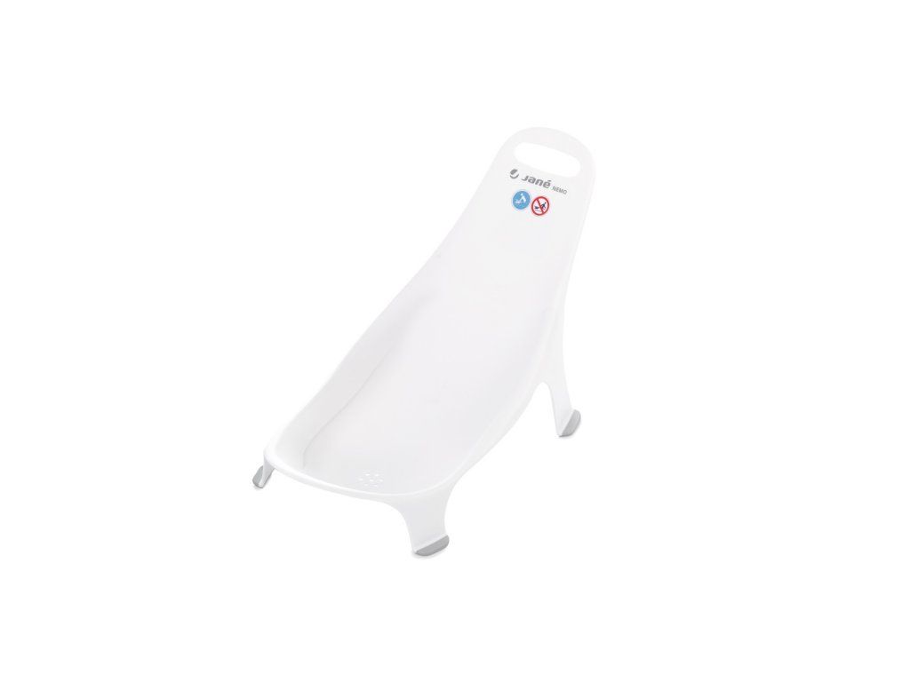Lehátko do vaničky Jané Nemo premení kúpanie na pokojnejšiu a pohodlnejšiu rutinu už od prvých dní života vášho bábätka. Vďaka ergonomickému tvaru sa lehátko prispôsobí telíčku bábätka a poskytne mu stabilnú oporu, zatiaľ čo rodič má voľnejšie ruky na bezpečné a príjemné umývanie. Štyri oporné body a protišmykové nožičky zvyšujú stabilitu vo vaničke. Otvory na odtok vody umožňujú rýchlejšie oschnutie. Vďaka madlu lehátko môžete po kúpaní zavesiť pre ľahké skladovanie.