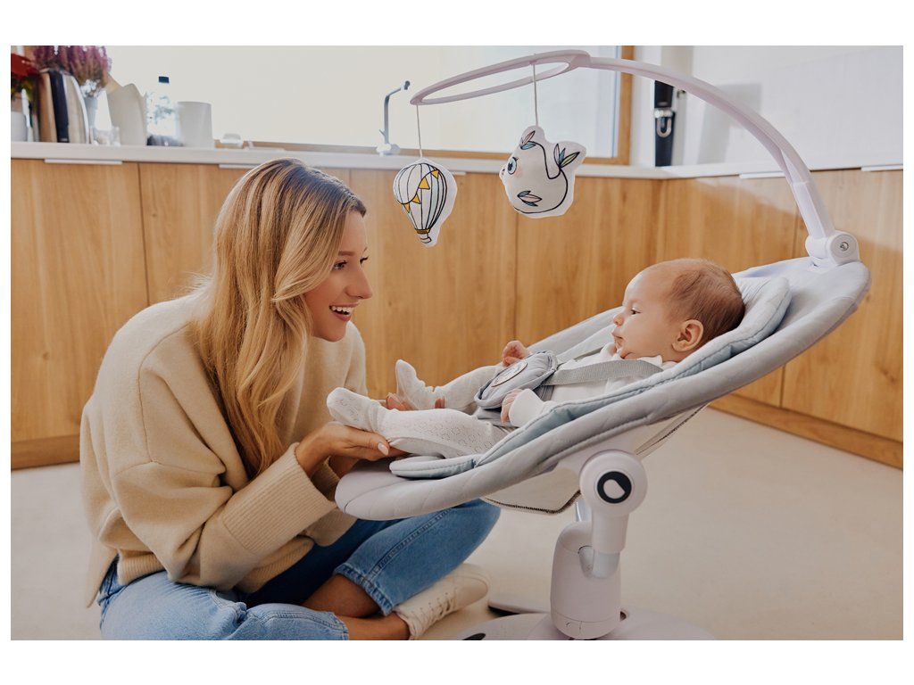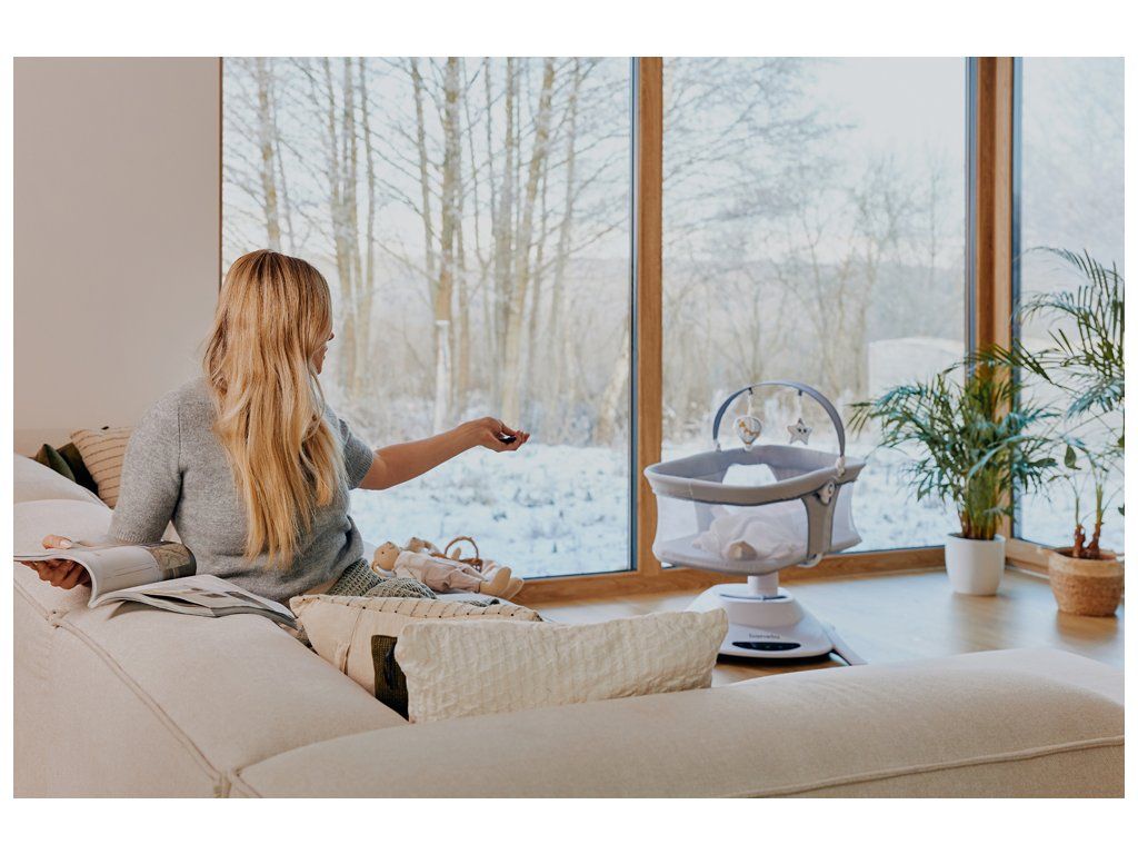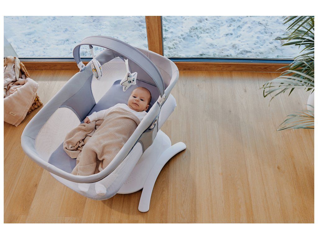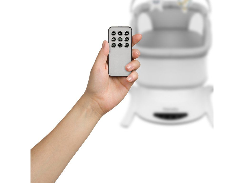 Funkcie, ktoré uľahčujú život: Kolíska je vybavená mnohými užitočnými funkciami, ktoré rodičom uľahčia život. Nočný režim spôsobí, že sa kolíska začne pomaly spomaľovať, až kým sa úplne nezastaví. Aktivácia automatického detektoru pohybu - zapne hojdanie a hudbu, keď sa batoľa začne vrtieť. Je to preto, že Bella sa o dieťa stará rovnako inštinktívne ako jeho opatrovateľ. O všetkých nastaveniach prístroja môžete rozhodovať na dotykovom ovládacom paneli alebo na diaľku pomocou diaľkového ovládania. Tento model hrá 12 pokojných melódií s ovládaním hlasitosti.