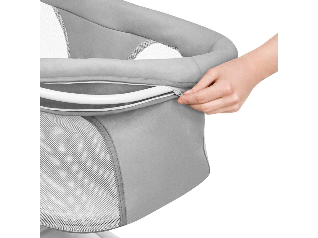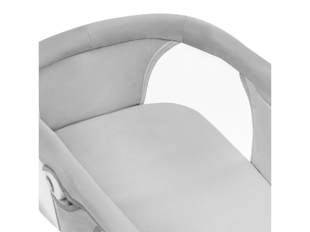 Sedadlo v tradičnej verzii kolísky je široké a vhodne tvarované, aby zabezpečilo pohodlnú a bezpečnú polohu dieťaťa. Má 5-bodové bezpečnostné pásy. Sedadlo má nastaviteľný sklon v 3 stupňoch - od polohy v ľahu, ktorá je ideálna na odpočinok, cez pololeh až po sed - pre deti, ktoré sú zvedavé objavovať svet a chcú sa viac zapájať do rodinných interakcií. Nájdete tu aj mäkký, mimoriadne pohodlný vankúš, ktorý sa prispôsobí telu vášho dieťatka a poskytne mu tú správnu oporu. Jeho vonkajšia strana je vyrobená z prírodnej bambusovej tkaniny, ktorá má množstvo výhod. Tento vzdušný, na dotyk príjemný materiál môže prísť do priameho kontaktu s pokožkou, a to aj na najcitlivejších miestach tela. Tkanina je priedušná, poskytuje účinné vetranie a zabraňuje nadmernému poteniu. Vďaka svojim hygroskopickým vlastnostiam bambus absorbuje vlhkosť, čím zabraňuje rastu húb a plesní. Neobsahuje žiadne umelé prísady. Je nielen ekologický, ale aj bezpečný pre alergikov.