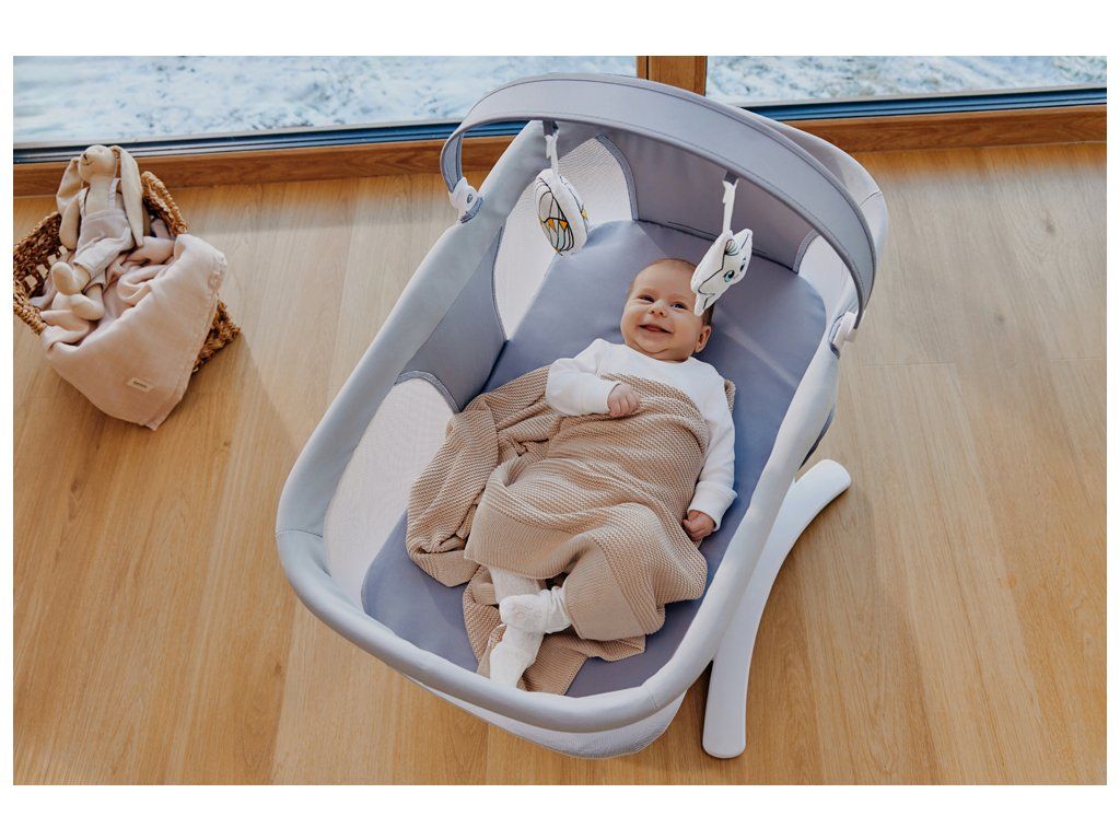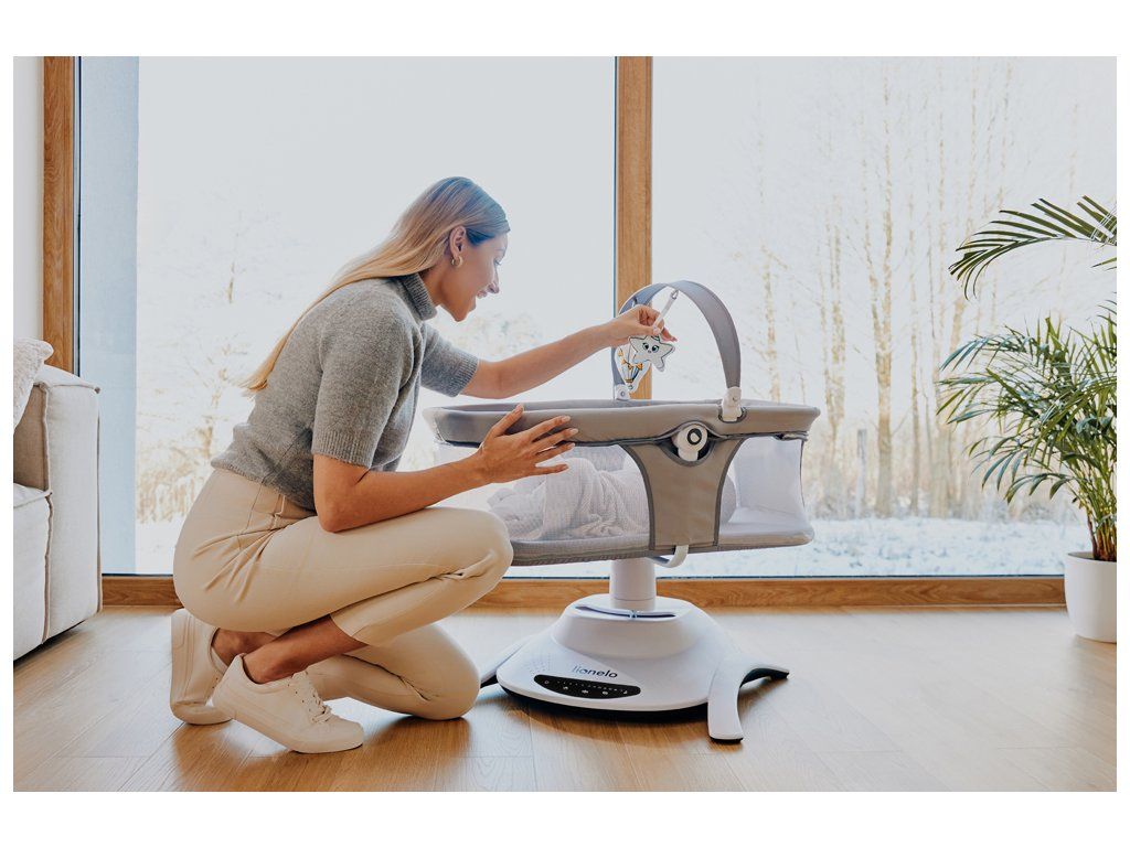 Ešte viac výhod kolísky Lionelo Bella Set 2v1: Všetky nastavenia výrobku sa určujú na dotykovom ovládacom paneli alebo pomocou diaľkového ovládania. Vďaka tichej prevádzke motora si môžete byť istí, že vaše dieťa nebude budiť, keď si sladko zdriemne. Tento model má 12 pokojných melódií a hrazdu s hračkou - 3 vo funkcii kolísania, 2 vo funkcii postieľky. Príslušenstvo ďalej precvičuje koncentráciu dieťaťa, poskytuje mu nové podnety a podnecuje ho k tomu, aby naťahovalo ruky. Kolíska Lionelo Bella Set 2v1 je ľahká a možno ho ľahko premiestniť a postaviť kdekoľvek. Protišmykové podložky chránia podlahu pred poškriabaním. V prípade znečistenia možno rám utrieť vlhkou handričkou a poťah matraca a čalúnenie je možné prať ručne. Súčasťou balenia je aj funkčná moskytiéra určená na vaničku.