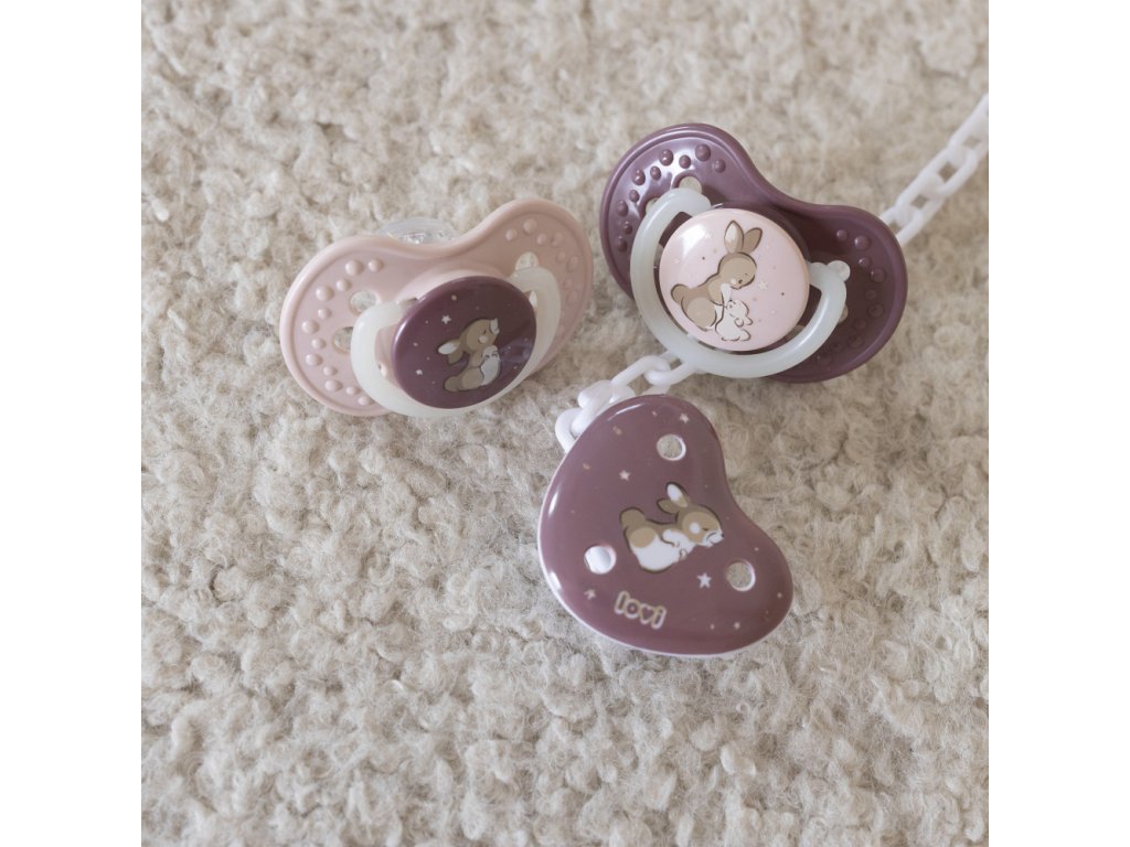 Dynamické cumlíky LOVI® boli vytvorené v spolupráci s neurologopedmi. Unikátny dizajn nerovnomernej vrstvy silikónu a symetrický tvar inšpirovaný matkinou bradavkou. Osviežujúce moderné vzory podčiarkujú svietiaci úchyt v tme.