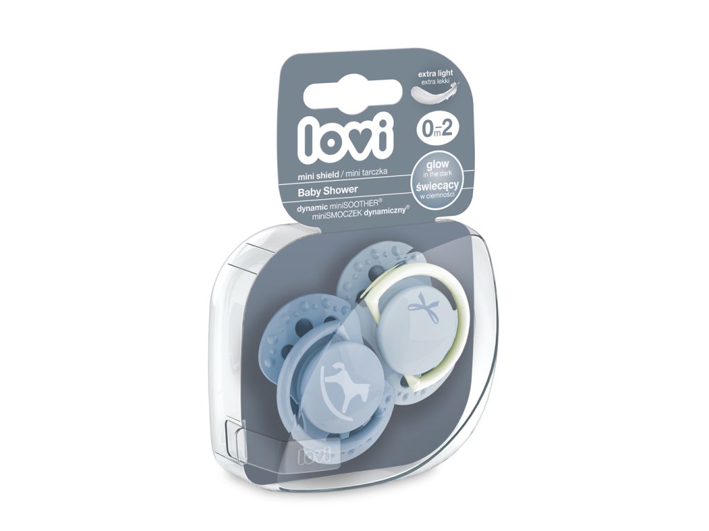 Umožňuje dieťaťu voľne dýchať nosom. Je vyrobený z bezpečného materiálu, ktorý neobsahuje BPA Jedinečný okraj štítku je vyrobený zo zdravotníckeho materiálu, je príjemný na dotyk a zabraňuje otlačeniu cumlíka. Veľkosť štítku je oproti štandardným cumlíkom LOVI zmenšená.