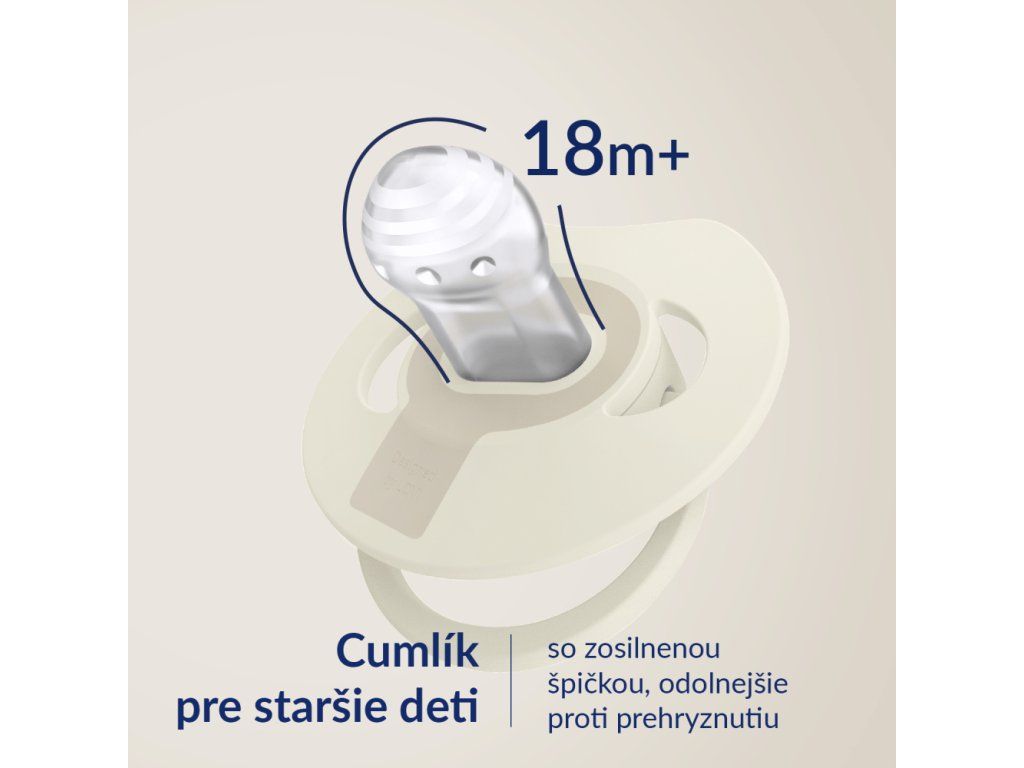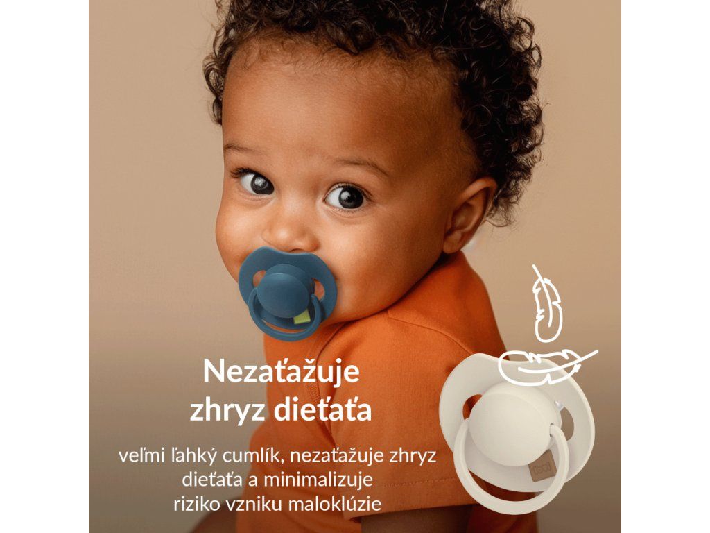 Veľmi ľahký cumlík, nezaťažuje zhryz dieťaťa a minimalizuje riziko vzniku maloklúzie.