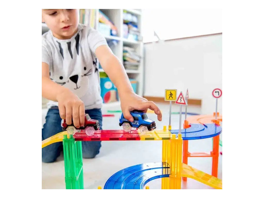 Objavte najlepšiu sadu magnetických dielikov, ktoré môžete nájsť, aby ste si postavili fantastickú autodráhu. Značka Braintoys nám prináša nádhernú 50-dielnu súpravu pretekárskej dráhy Imanix navrhnutú tak, aby si deti mohli postaviť vlastnú pretekársku dráhu pomocou rôznych dielikov a geometrických blokov v 2D a 3D. Na navrhnutie 50-dielnej pretekárskej dráhy budú musieť chlapci a dievčatá vytvoriť rôzne okruhy so zákrutami, svahmi a mostíkmi, aby sa ich autíčka mohli voľne pohybovať. Každý z dielikov pretekárskej dráhy Imanix obsahuje magnet, ktorý dáva voľnú ruku fantázii a umožňuje ich spájať tisíckami rôznych spôsobov. Spojením každého dielu budú postavené bloky, výsledkom čoho bude pretekárska dráha imanix.