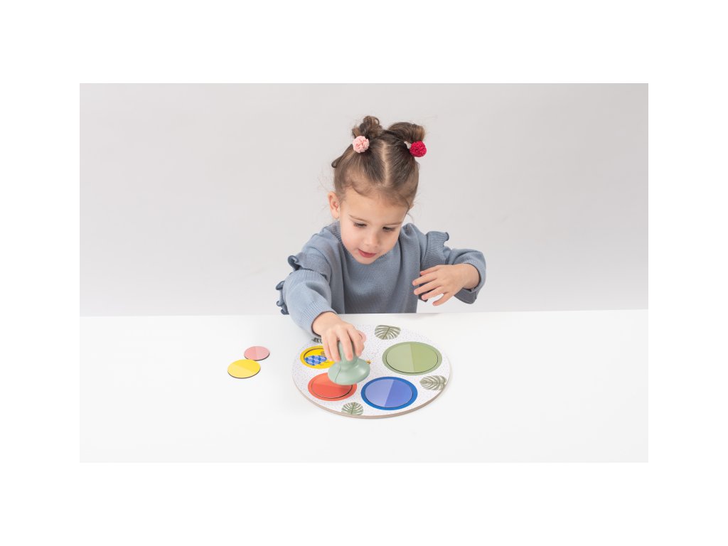 - od 18 mesiacov: Požiadajte dieťa, aby našlo konkrétnu farbu a odkrylo obrázok pod ňou umiestnený pomocou magnetického chytača.