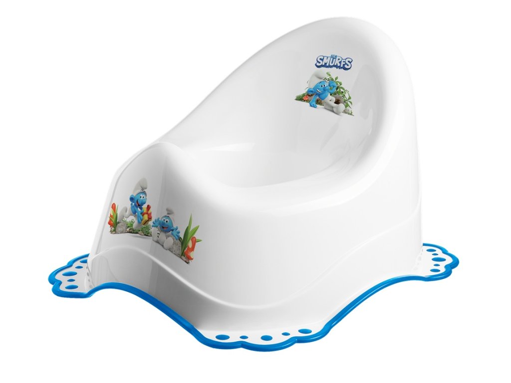 Dizajnový nočník z kolekcie Šmolkovia je anatomicky tvarovaný a má vysokú opierku chrbta, aby bol pohodlný pre dievčatá i chlapcov.