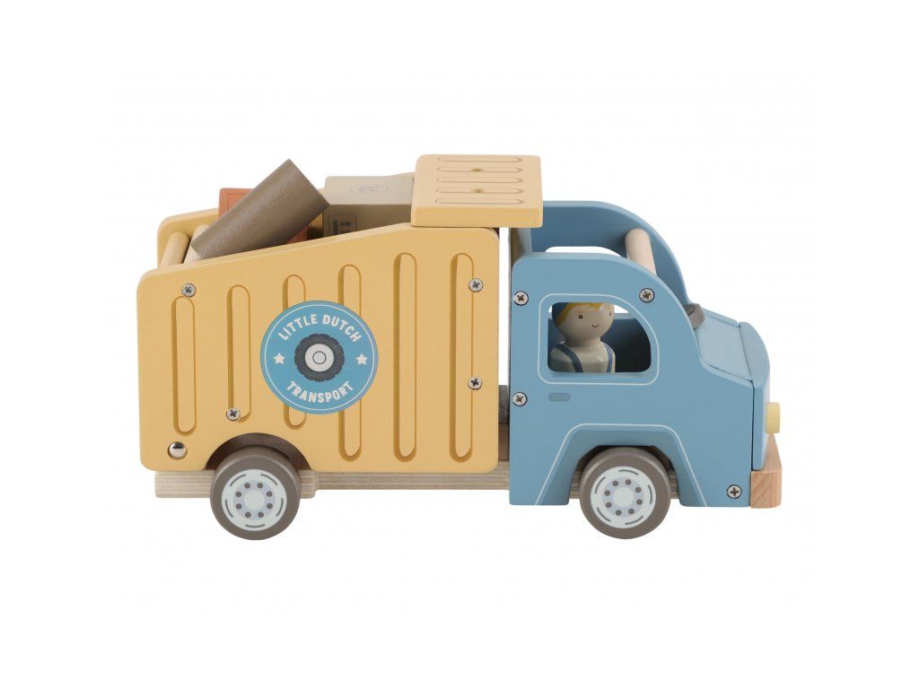 Nákladiak so sklápačkou je ideálna hračka pre malých staviteľov, ktorí chcú prevážať, vykladať a vymýšľať nové príbehy. Kvalitné drevené prevedenie s dôrazom na detail zaisťuje dlhú životnosť a hodiny kreatívnej hry. Auto má funkčnú sklápaciu korbu, vďaka ktorej deti ľahko naložia a vyložia svoj náklad. Súčasťou balenia sú dvaja vodiči a rôzne typy nákladu – klády, kamene a drevené debničky. Deti tak môžu vymýšľať stále nové príbehy, rozvíjať fantáziu a precvičovať jemnú motoriku.