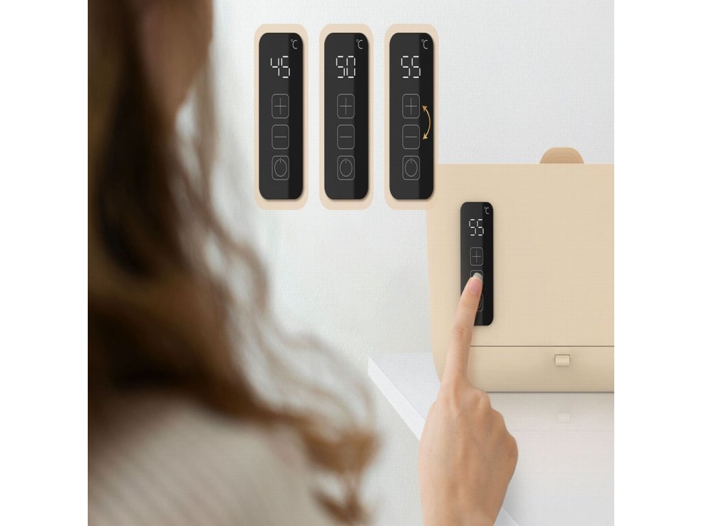 - Tri úrovne ohrevu – zvoľte si teplotu 45°C, 50°C alebo 55°C podľa aktuálnej potreby